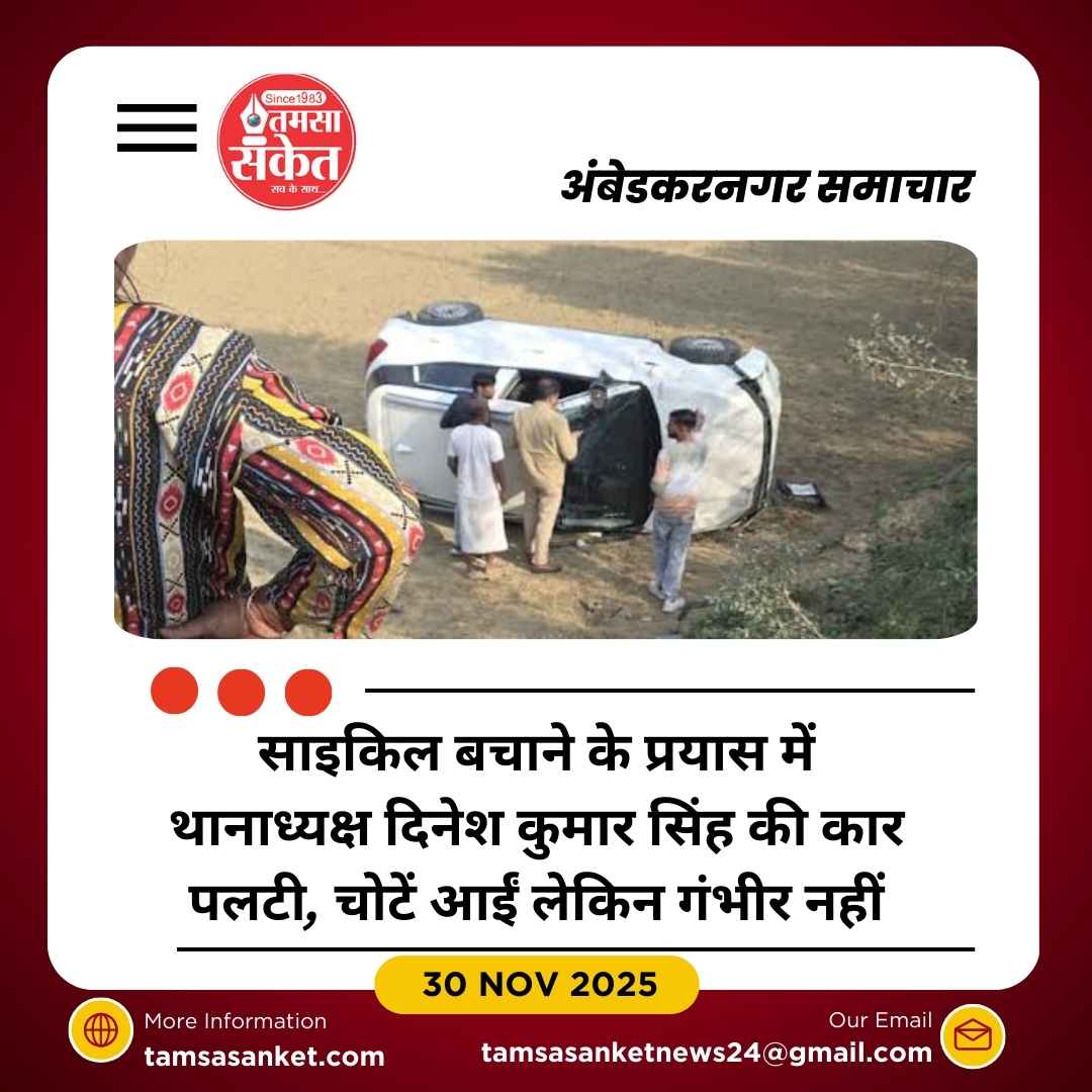 अम्बेडकरनगर: रविवार को थानाध्यक्ष सम्मनपुर दिनेश कुमार सिंह की निजी कार गौहन्ना बाईपास के पास सड़क किनारे खेत में पलट गई। हादसा उस समय हुआ जब उन्होंने सामने से आ…