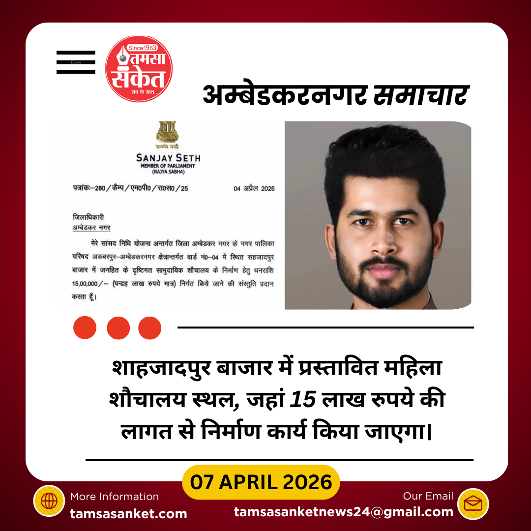 अम्बेडकरनगर के अकबरपुर क्षेत्र स्थित शहजादपुर बाजार में महिला शौचालय निर्माण के लिए 15 लाख रुपये की मंजूरी मिल गई है। यह धनराशि राज्यसभा सांसद संजय सेठ की सांसद निधि से स्वीकृत की गई है।