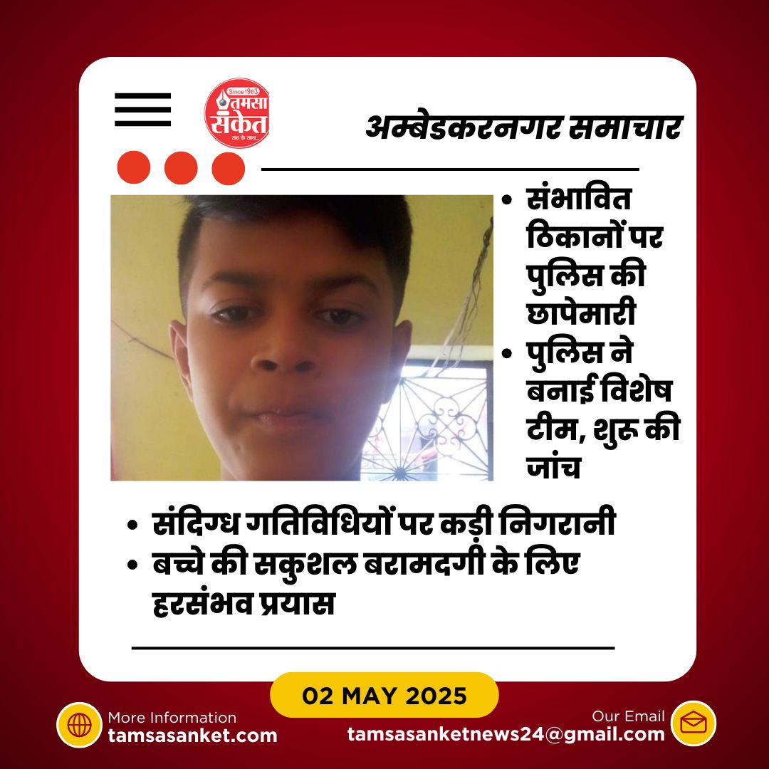 कोतवाली प्रभारी संतोष कुमार सिंह ने बताया कि मामले को गंभीरता से लेते हुए पुलिस टीम को लगाया गया है। गांव और आसपास के इलाकों में सीसीटीवी फुटेज की जांच की जा रही है। संदिग्ध गतिविधियों पर नजर रखी जा रही है। उन्होंने आश्वासन दिया कि जल्द ही बच्चे को सुरक्षित ढूंढने का हरसंभव प्रयास किया जा रहा है।