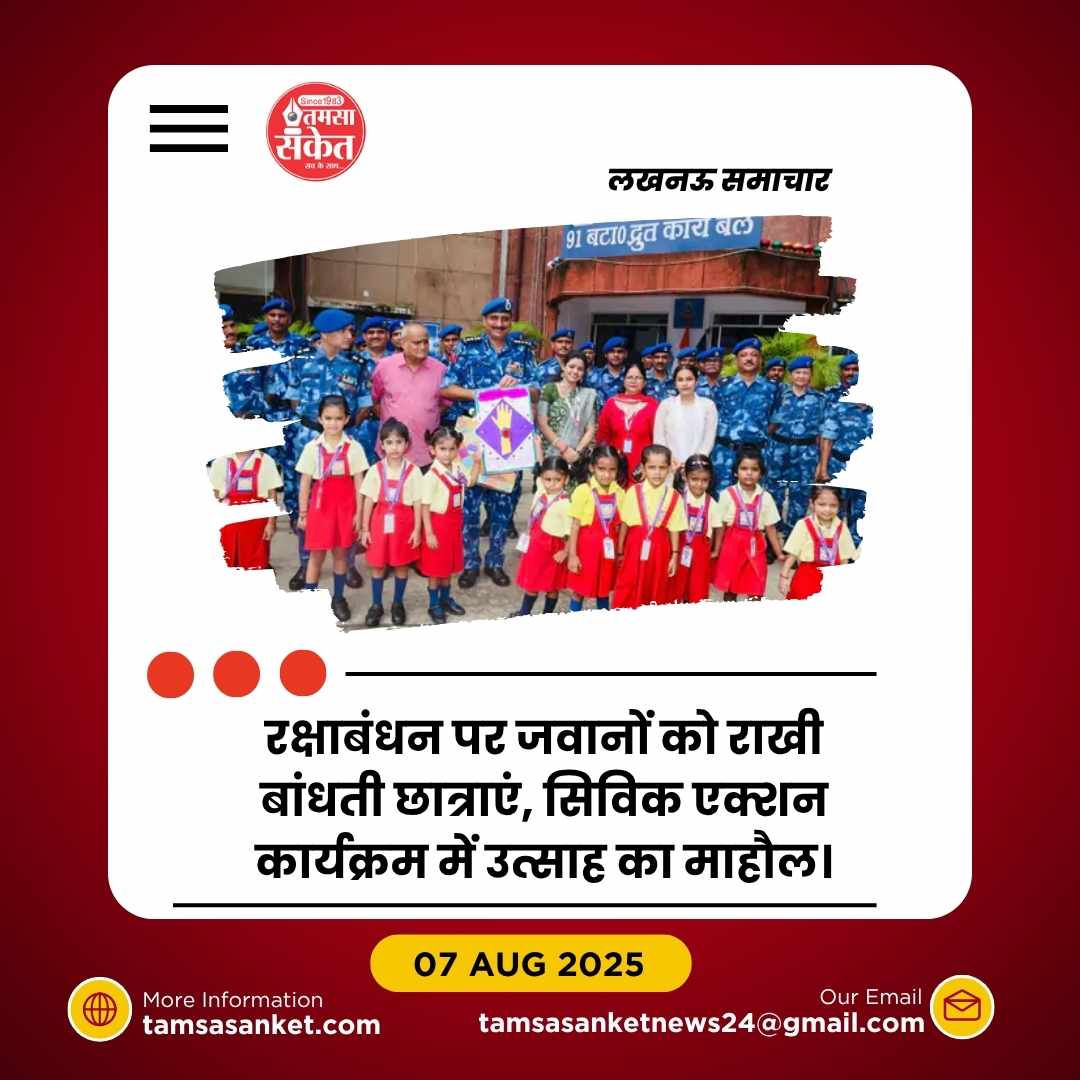 लखनऊ रक्षाबंधन के अवसर पर 91वीं वाहिनी द्रुत कार्य बल (आरएएफ) द्वारा गुरुवार को सिविक एक्शन कार्यक्रम का भव्य आयोजन किया गया। इस कार्यक्रम की शुरुआत वाहिनी के कमांडेंट जितेंद्र कुमार ओझा के निर्देशन में वैदिक मंत्रोच्चारण के साथ हुई।