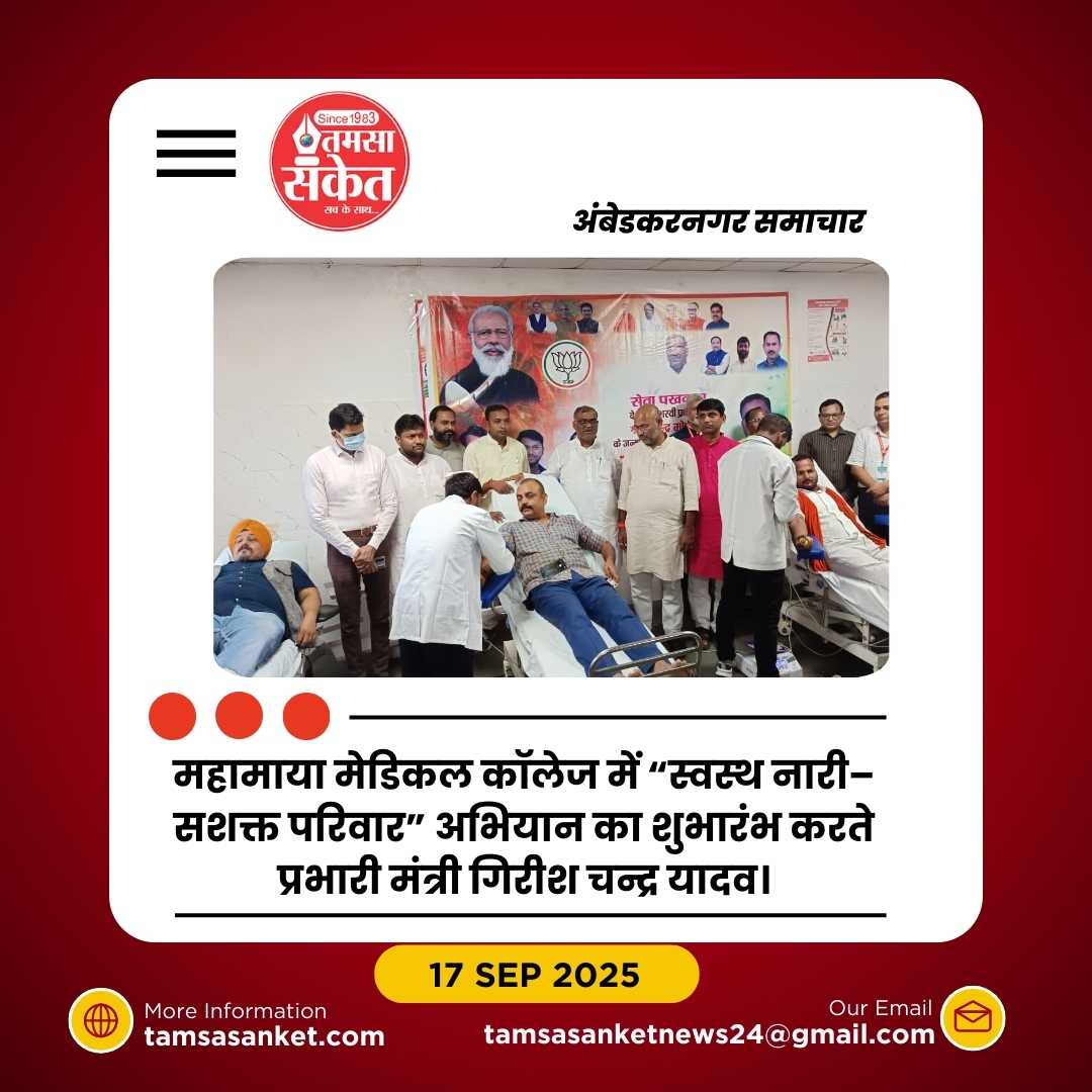 अंबेडकरनगर। जिले में महिलाओं के स्वास्थ्य को लेकर “स्वस्थ नारी–सशक्त परिवार” अभियान का शुभारंभ आज महामाया राजकीय एलोपैथिक मेडिकल कॉलेज के प्रेक्षागृह से हुआ। अभियान का उद्घाटन प्रभारी मंत्री गिरीश चन्द्र यादव ने दीप प्रज्वलन व मां सरस्वती की प्रतिमा पर माल्यार्पण कर किया। इस अवसर पर जनप्रतिनिधियों, स्वास्थ्य विभाग के अधिकारियों, मेडिकल स्टाफ, आशा कार्यकर्ताओं, आंगनबाड़ी कार्यकर्ताओं और छात्राओं की उपस्थिति रही।