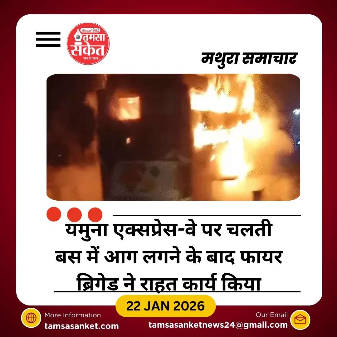 मथुरा। गुरुवार सुबह यमुना एक्सप्रेस-वे पर चलती एक बस में भीषण आग लग गई। आग लगते ही यात्रियों में अफरा-तफरी मच गई, और उन्होंने खिड़की और दरवाजों से कूदकर अपनी जान बचाई
