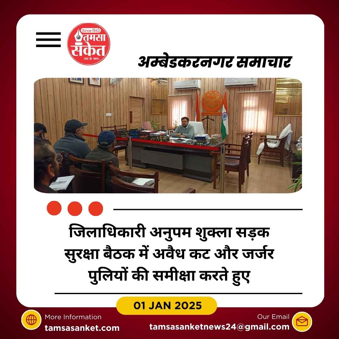 अम्बेडकरनगर। जनपद में सड़क दुर्घटनाओं पर प्रभावी नियंत्रण और यातायात व्यवस्था को सुरक्षित बनाने के लिए जिला प्रशासन ने सख्त रुख अपनाया है। कलेक्ट्रेट सभागार में जिलाधिकारी अनुपम शुक्ला की अध्यक्षता में सड़क सुरक्षा समिति की बैठक आयोजित की गई, जिसमें अवैध कट, क्षतिग्रस्त पुलियों और दुर्घटना संभावित स्थलों की विस्तृत समीक्षा की गई।