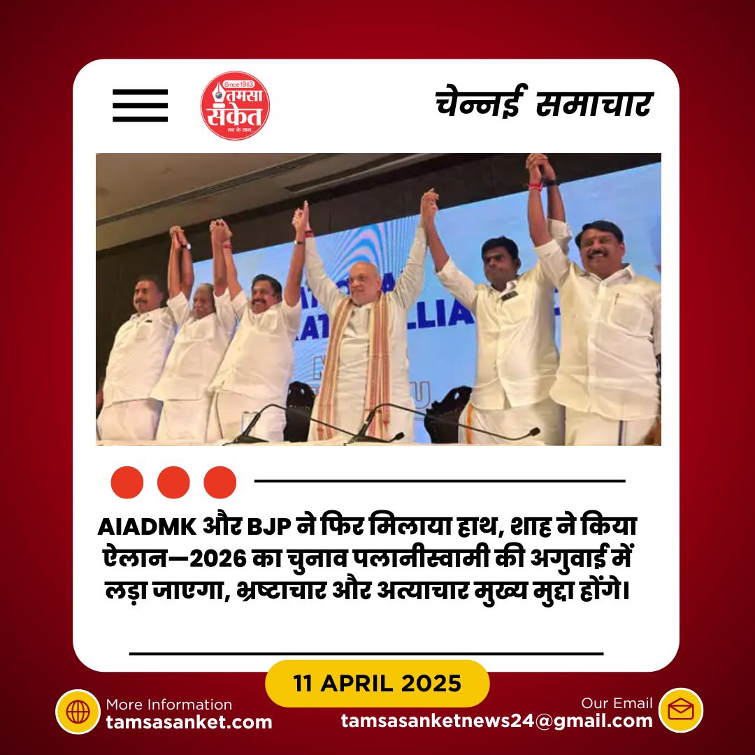 चेन्नई। केंद्रीय गृहमंत्री अमित शाह ने शुक्रवार को AIADMK के साथ BJP के गठबंधन की फिर से घोषणा की। उन्होंने बताया कि 2026 के विधानसभा चुनाव AIADMK प्रमुख ई. पलानीस्वामी के नेतृत्व में लड़े जाएंगे। सीटों का बंटवारा बाद में तय होगा। शाह ने कहा कि गठबंधन NDA के लिए लाभकारी है और AIADMK की कोई अतिरिक्त मांग नहीं है।