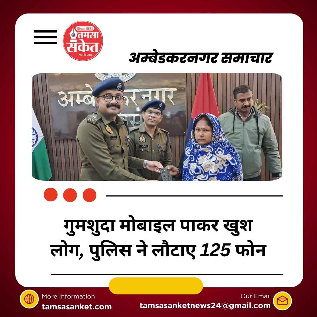 अंबेडकरनगर।जनपद अम्बेडकरनगर पुलिस को गुमशुदा मोबाइल फोन की बरामदगी में बड़ी सफलता मिली है। पुलिस कार्यालय में गठित मोबाइल रिकवरी सेल (सर्विलांस सेल) की टीम ने विभिन्न थाना क्षेत्रों से प्राप्त शिकायतों पर कार्रवाई करते हुए कुल 125 मोबाइल फोन बरामद किए हैं। बरामद मोबाइलों की अनुमानित कीमत लगभग 25 लाख रुपये बताई जा रही है। सभी मोबाइल फोन उनके वास्तविक धारकों को वर्ष 2026 के पहले दिन एक जनवरी को सौंपे गए।