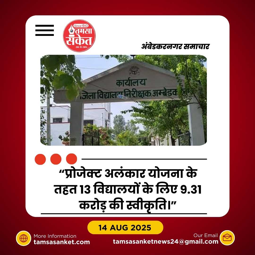 अम्बेडकरनगर। जिले के अशासकीय सहायता प्राप्त माध्यमिक विद्यालयों की स्थिति को संवारने के लिए प्रोजेक्ट अलंकार योजना के दूसरे चरण के तहत बड़ा वित्तीय सहयोग मिला है। कुल 13 विद्यालयों को इंफ्रास्ट्रक्चर सुधार के लिए 9.31 करोड़ रुपये की स्वीकृति दी गई है। इस राशि से शिक्षण कक्ष, शौचालय और बाउंड्रीवॉल का निर्माण किया जाएगा, जिससे विद्यार्थियों के लिए बेहतर और सुरक्षित शैक्षिक माहौल तैयार होगा।