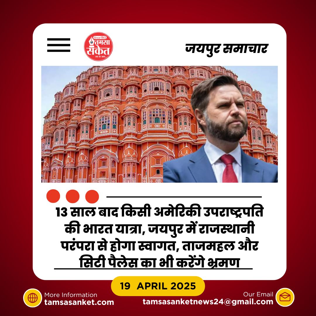- 21 अप्रैल की रात को वेंस जयपुर पहुंचेंगे, जहां एयरपोर्ट पर रेड कार्पेट बिछाकर उनका स्वागत किया जाएगा।