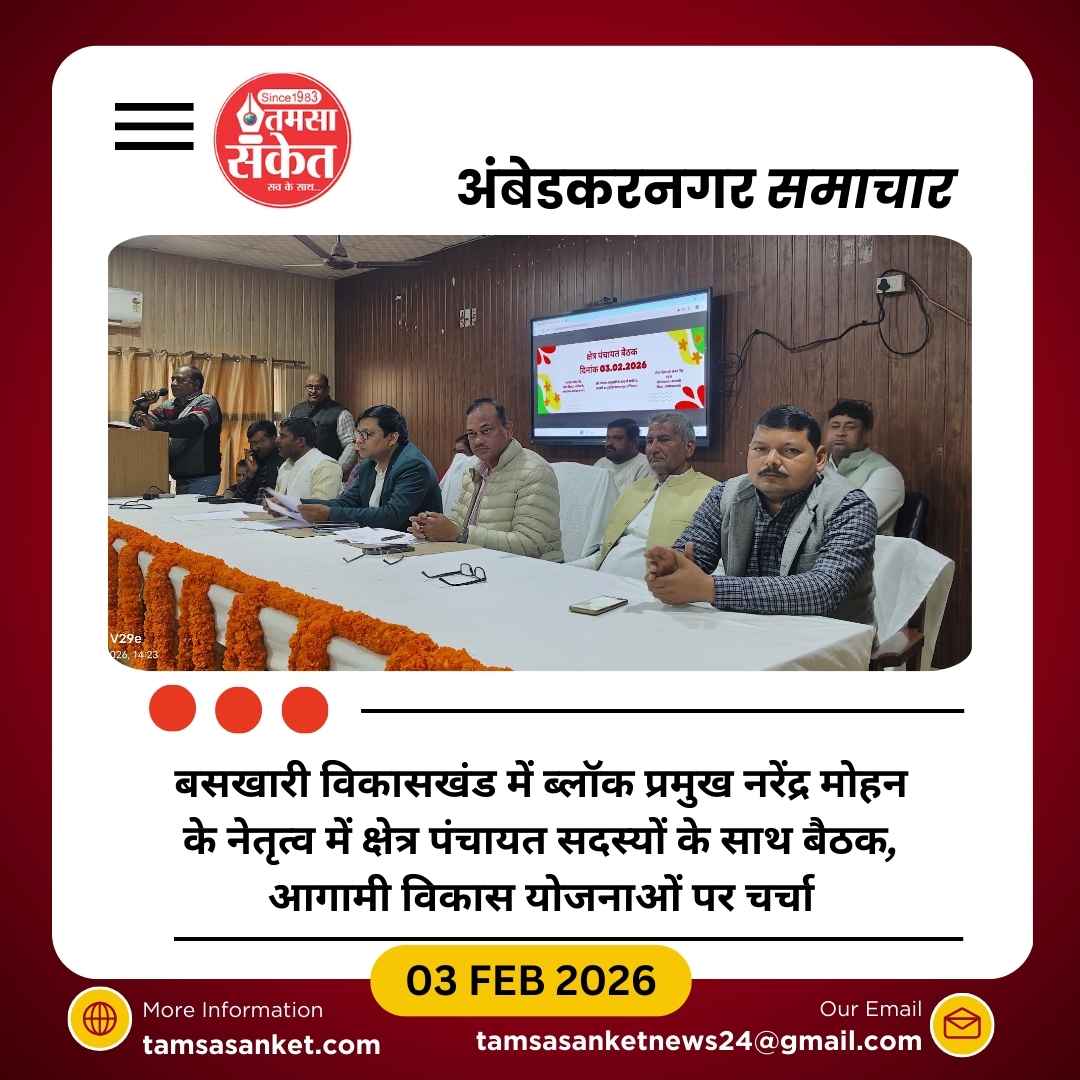 अंबेडकरनगर। विकासखंड बसखारी के ड्वाकरा हाल में मंगलवार को ब्लॉक प्रमुख नरेंद्र मोहन उर्फ संजय सिंह की अध्यक्षता में क्षेत्र पंचायत सदस्यों के साथ बैठक आयोजित की गई। बैठक का संचालन भाजपा नेता रूद्र प्रसाद उपाध्याय ने किया। मुख्य अतिथि के रूप में खंड विकास अधिकारी राघवेंद्र प्रताप सिंह उपस्थित रहे।