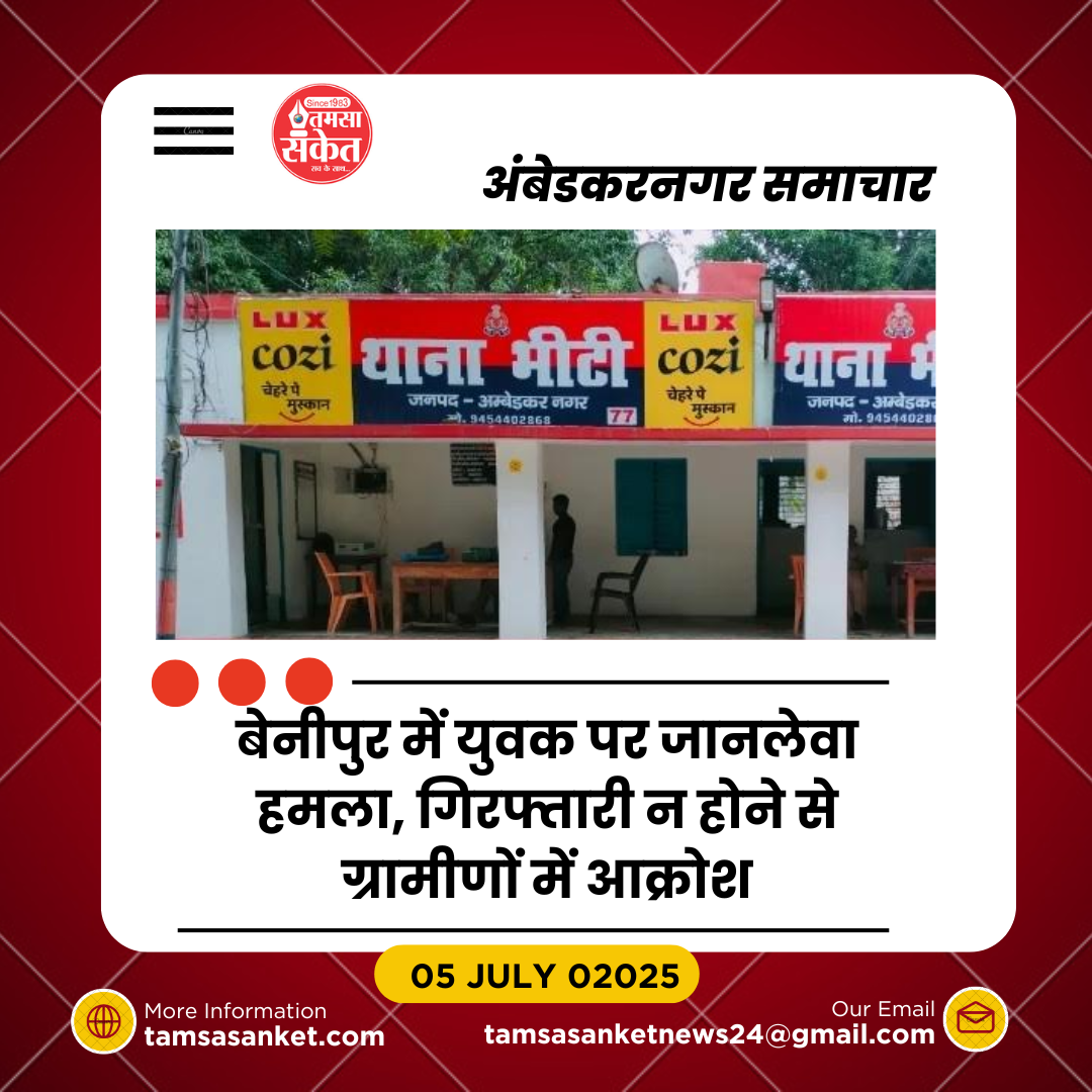 अंबेडकरनगर। भीटी थाना क्षेत्र में बेलगाम हो चुके दबंगों की सनसनीखेज हरकत ने कानून व्यवस्था पर बड़ा सवाल खड़ा कर दिया है। अकबरपुर कोतवाली अंतर्गत बेनीपुर गांव में युवक पर जानलेवा हमला कर फरार हुए नामजद आरोपियों के खिलाफ पुलिस की अब तक की निष्क्रियता को लेकर स्थानीय लोगों में आक्रोश साफ झलक रहा है।