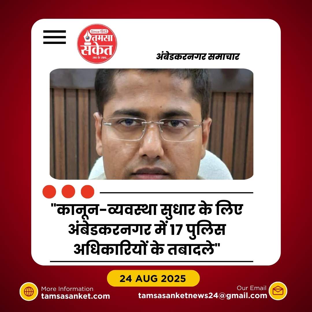 टांडा में तैनात महिला उपनिरीक्षक वंदना मौर्य को बसखारी स्थानांतरित किया गया है। पुलिस लाइन में तैनात उपनिरीक्षक दिनेश कुमार को राजेसुल्तानपुर, और सीताराम को कटक थाने में नई तैनाती दी गई है। इसके अतिरिक्त, उपनिरीक्षक विजय कुमार सोनी को हंसवर, प्रकाश कुमार को सम्मनपुर, संजय कुमार को जैतपुर, तथा हयातगंज चौकी प्रभारी उपनिरीक्षक दिनेश कुमार राय को सम्मनपुर थाने में तैनात किया गया है।