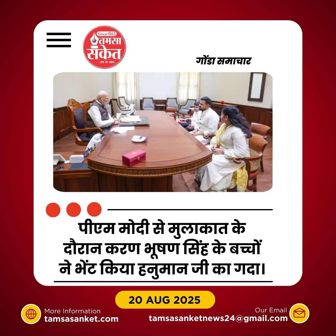मुलाकात के दौरान कामाक्षी और अमर्थ ने पीएम मोदी को हनुमान जी का छोटा गदा भेंट किया। गदा देते समय पीएम मोदी मुस्कुराते नजर आए। उन्होंने अमर्थ से गदा के बारे में पूछा, जिस पर अमर्थ ने कहा, “ये हनुमान जी का गदा है, जिसे वे सबसे ज्यादा उपयोग करते हैं। मेरे बाबा (बृजभूषण शरण सिंह) के गले में भी हनुमान जी का गदा है।”