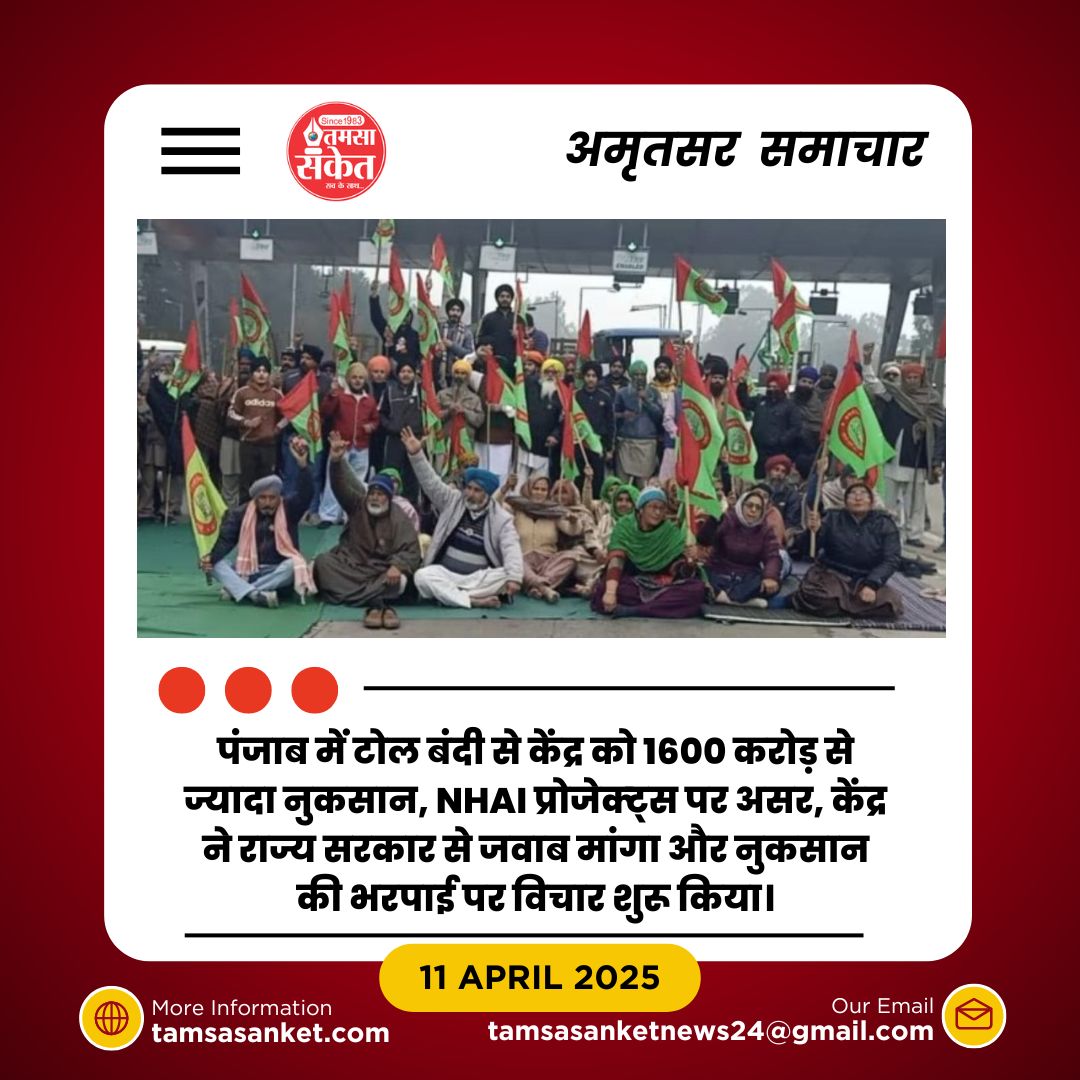 अमृतसर। केंद्र सरकार ने पंजाब में बार-बार टोल प्लाजा बंद किए जाने पर नाराजगी जताई है। सड़क परिवहन मंत्रालय ने पंजाब के मुख्य सचिव को पत्र भेजकर बताया कि अक्टूबर 2020 से नवंबर 2024 के बीच टोल रुकावटों के कारण 1638.85 करोड़ रुपए का नुकसान हुआ है। मंत्रालय ने चेतावनी दी कि यह घाटा पंजाब सरकार से वसूला जा सकता है।