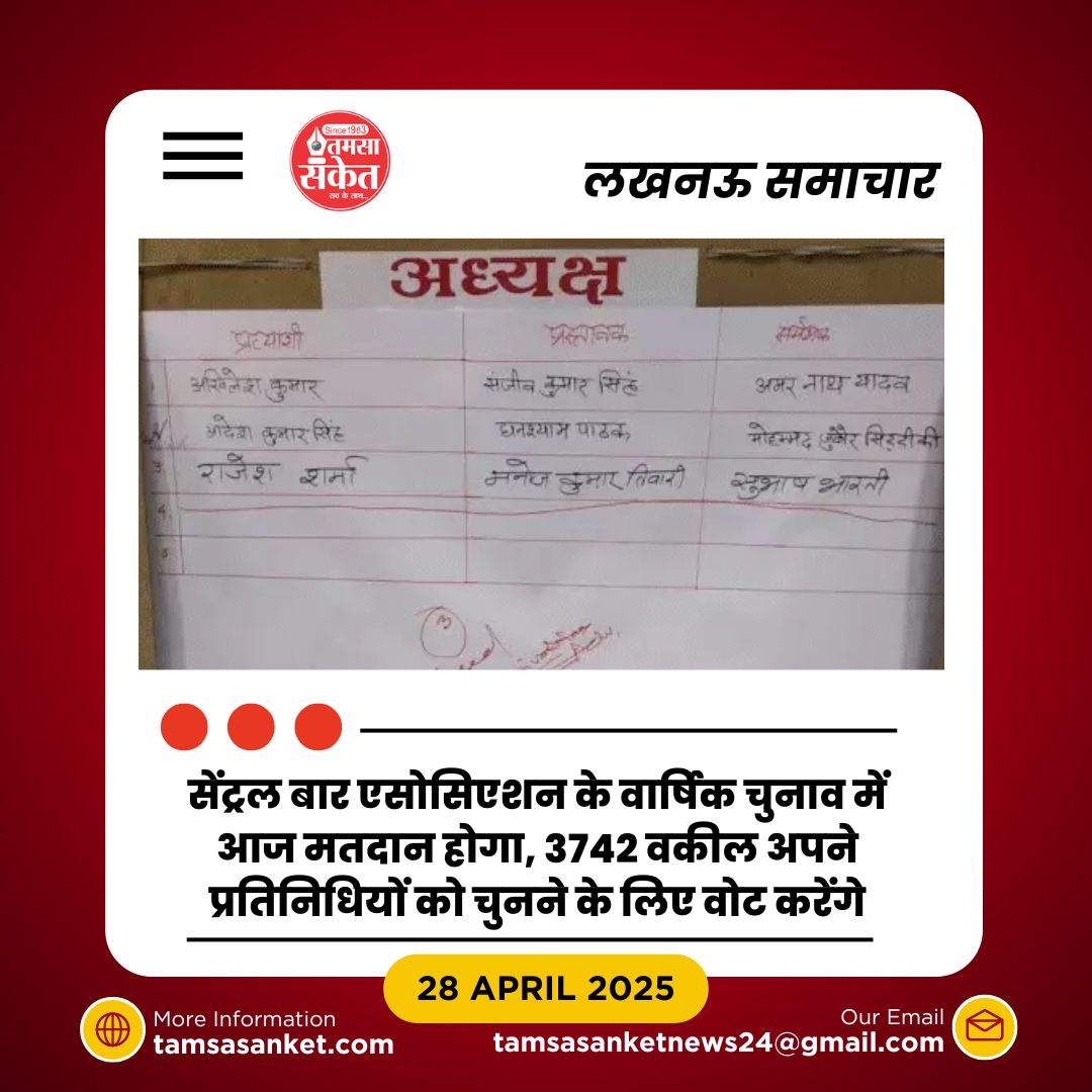 लखनऊ। लखनऊ सेंट्रल बार एसोसिएशन के वार्षिक चुनाव में इस बार कड़ा मुकाबला देखने को मिलेगा। अध्यक्ष, महासचिव, कोषाध्यक्ष और अन्य प्रमुख पदों के लिए कुल 128 प्रत्याशी चुनावी दौड़ में हैं। मतदान आज, 28 अप्रैल को सुबह 10 बजे से लेकर शाम 5 बजे तक होगा, और परिणाम 29 अप्रैल को घोषित किए जाएंगे। इस बार चुनाव में कुल 3742 मतदाता अपने अधिकार का प्रयोग करेंगे।