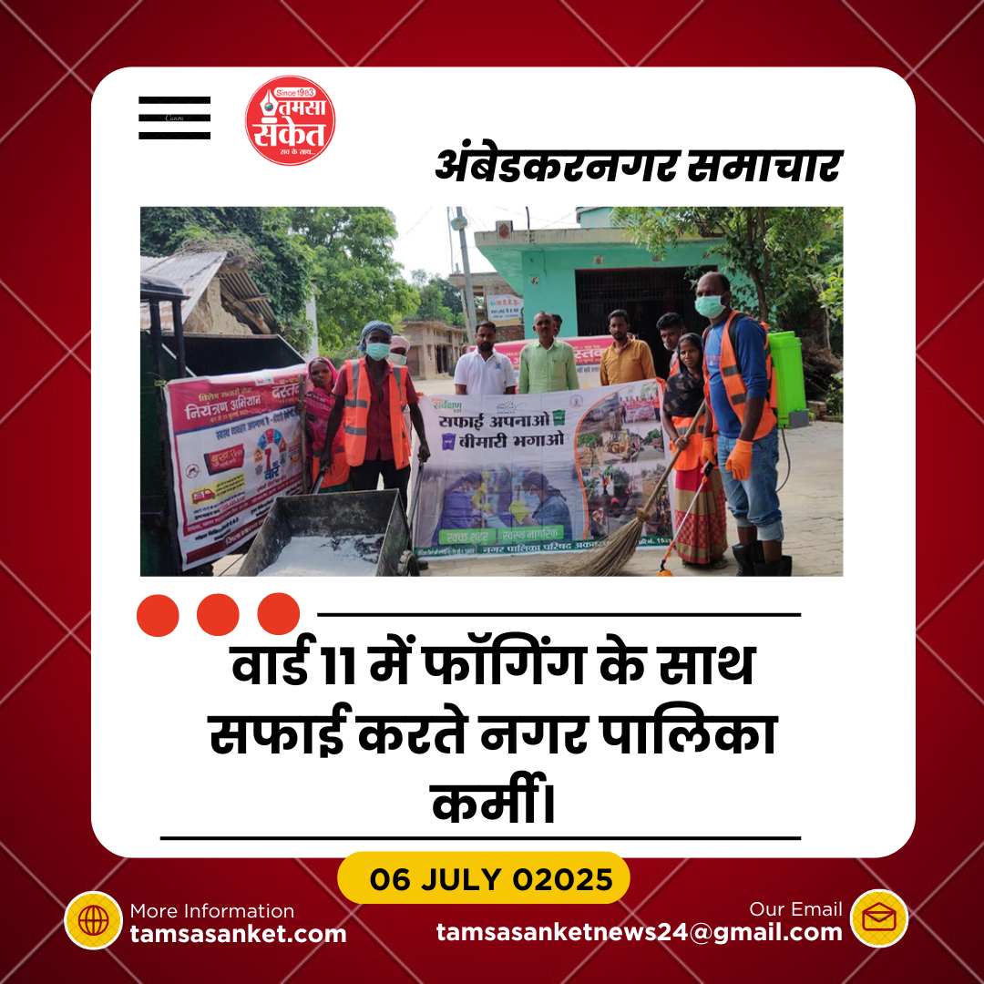 अंबेडकरनगर। नगर पालिका परिषद अकबरपुर द्वारा रविवार को संचारी रोग नियंत्रण और प्लास्टिक उन्मूलन महाअभियान के तहत वार्ड नंबर 11 गांधीनगर और वार्ड नंबर 12 अमरौला में विशेष सफाई एवं जनजागरूकता अभियान चलाया गया। इस दौरान नालों की सफाई से लेकर फॉगिंग तक और प्लास्टिक से मुक्ति की शपथ तक, अभियान में हर पहलू को प्राथमिकता के साथ लागू किया गया।
