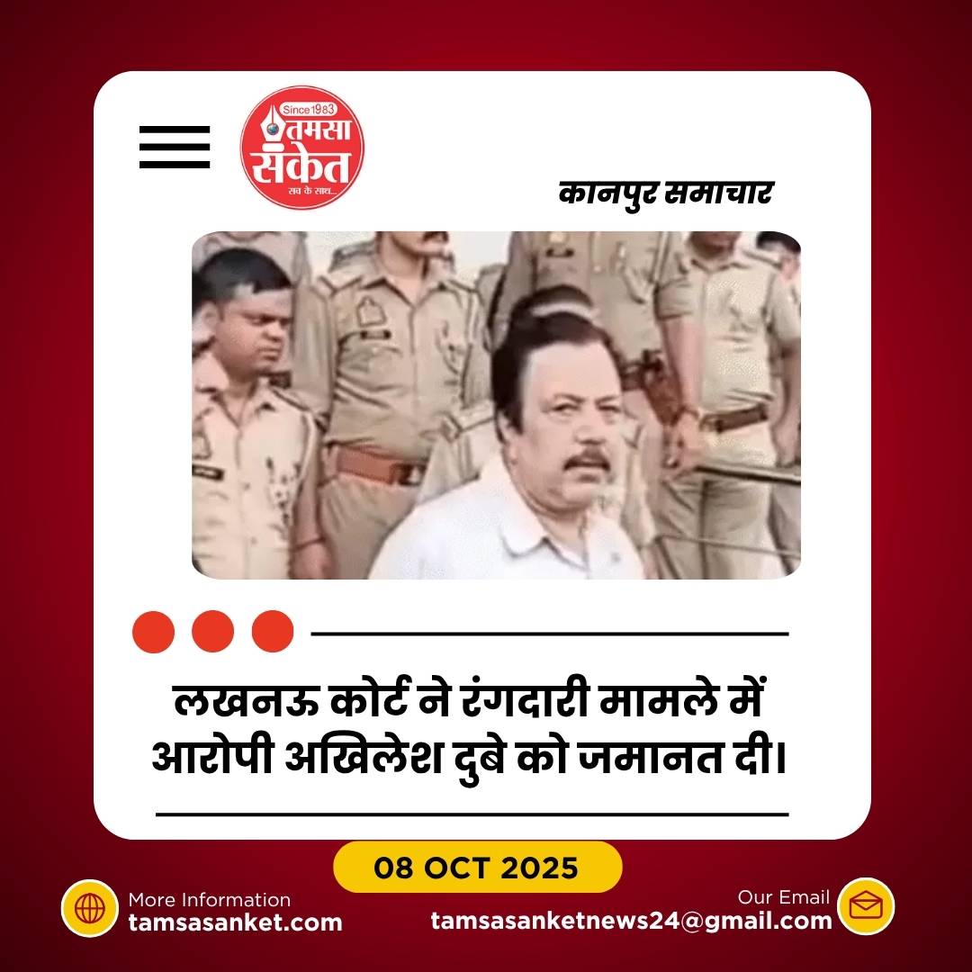 कानपुर। कांग्रेस नेता संदीप शुक्ला से रंगदारी मांगने के मामले में बढ़ी दो धाराओं के खिलाफ आज एडीजे–1 सुदामा प्रसाद की कोर्ट ने आरोपी एडवोकेट अखिलेश दुबे की जमानत अर्जी मंजूर कर दी।