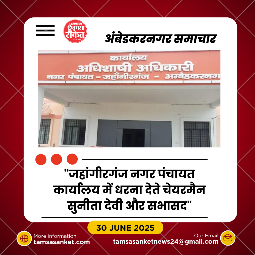 अम्बेडकरनगर। जहांगीरगंज नगर पंचायत में सार्वजनिक भूमि को लेकर उठे विवाद ने प्रशासनिक हलकों में हलचल मचा दी है। नगर पंचायत की चेयरमैन सुनीता देवी ने आधा दर्जन सभासदों के साथ कार्यालय परिसर में धरना देते हुए मुख्यमंत्री को संबोधित ज्ञापन सौंपा। उन्होंने आरोप लगाया कि स्थानीय स्तर पर पक्षपातपूर्ण कार्रवाई की जा रही है और पीडब्ल्यूडी की आड़ में निजी हित साधे जा रहे हैं।