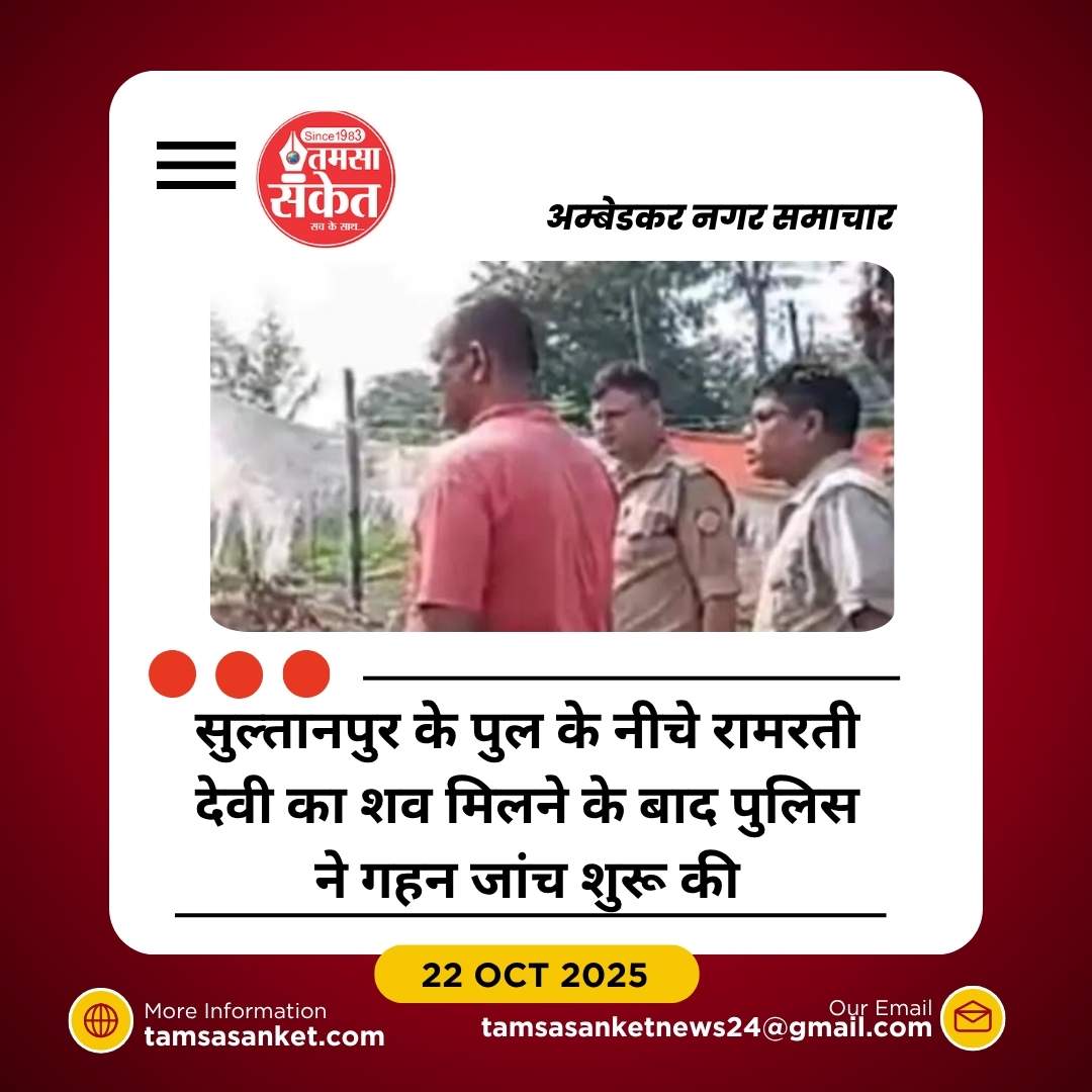 अम्बेडकरनगर: जिले के भीटी थाना क्षेत्र की रहने वाली 70 वर्षीय महिला रामरती देवी का शव सुल्तानपुर जिले के जयसिंहपुर थाना क्षेत्र में एक पुल के नीचे बरामद हुआ। महिला शुक्रवार की शाम से लापता थीं, जिसके बाद उनके परिवार ने गुमशुदगी की रिपोर्ट दर्ज कराई थी। पुलिस ने शव को कब्जे में लेकर पोस्टमॉर्टम के लिए भेज दिया है और मामले की गहनता से जांच शुरू कर दी है।
