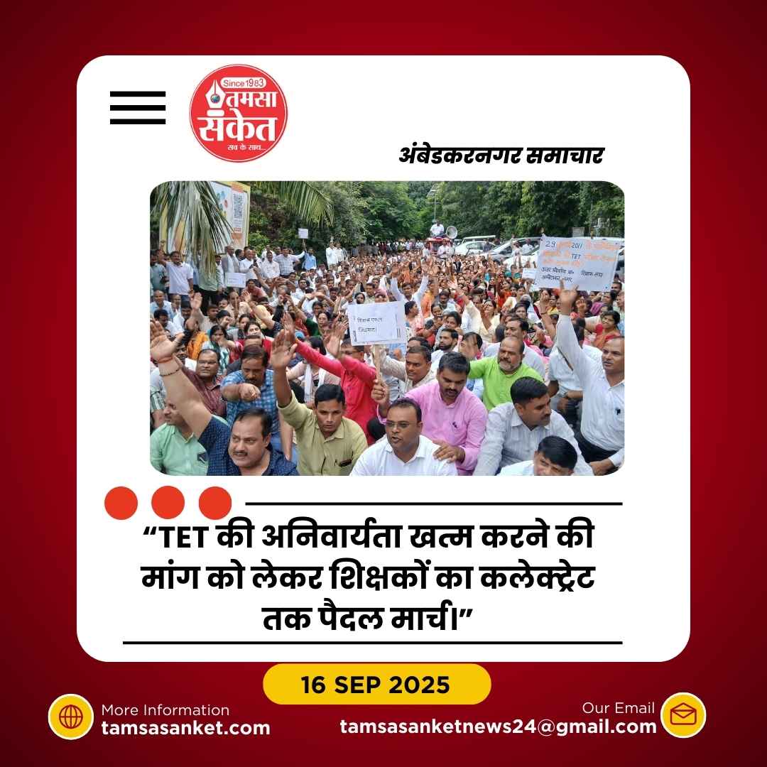 अंबेडकरनगर। TET की अनिवार्यता समाप्त करने की मांग को लेकर जनपद के परिषदीय शिक्षकों का विरोध प्रदर्शन अब सड़क पर उतर आया है। सोमवार को जिलेभर से जुटे शिक्षकों ने ब्लॉक स्तर से कलेक्ट्रेट तक पैदल मार्च निकाला और नारेबाजी करते हुए अपनी मांगों को लेकर जिला प्रशासन को ज्ञापन सौंपा।