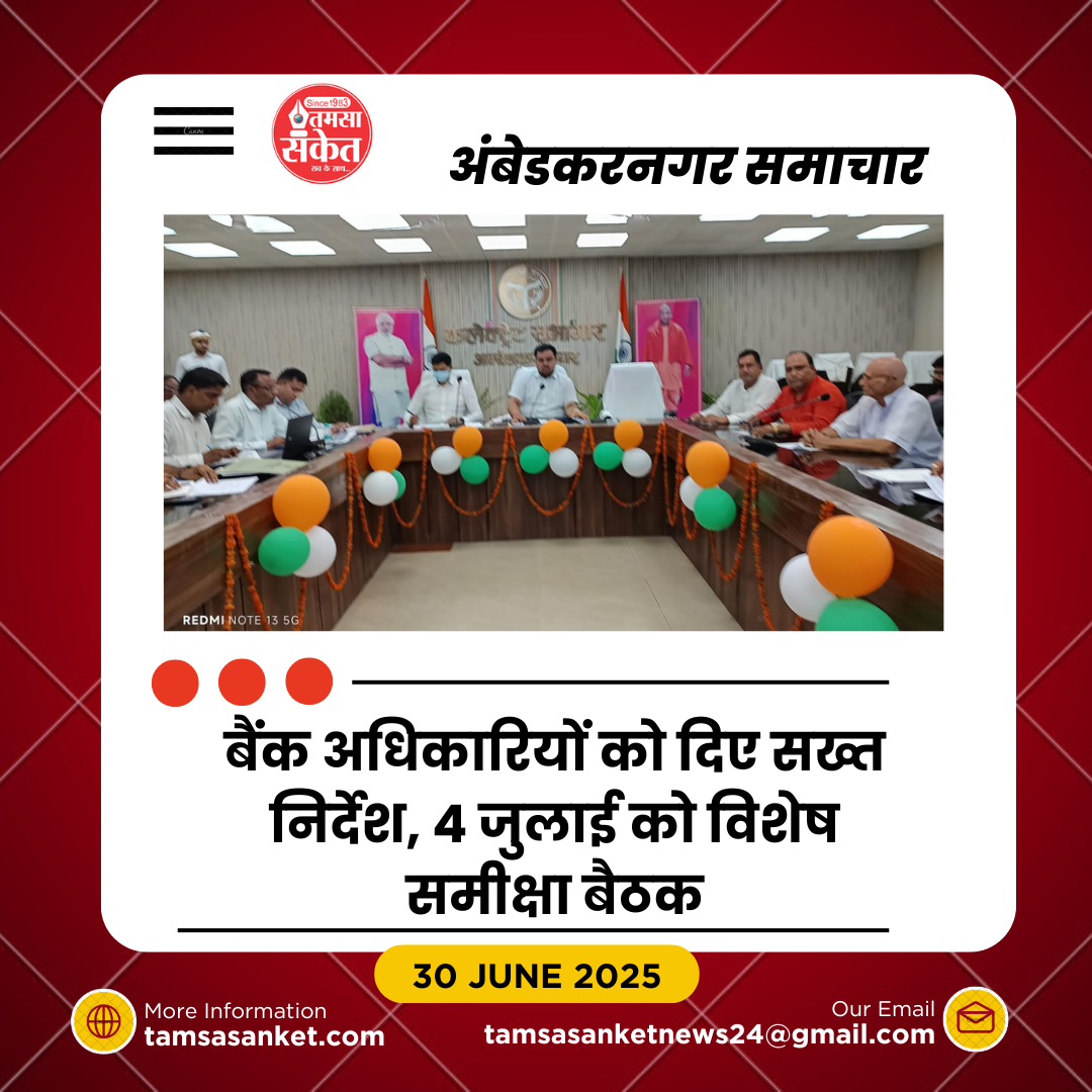 अम्बेडकरनगर। कलेक्ट्रेट सभागार में जिलाधिकारी अनुपम शुक्ला की अध्यक्षता में जिला उद्योग बंधु एवं व्यापार बंधु की संयुक्त बैठक आयोजित हुई। बैठक में मुख्यमंत्री युवा स्वरोजगार योजना, एक जनपद एक उत्पाद योजना, प्रधानमंत्री विश्वकर्मा योजना एवं मुख्यमंत्री युवा उद्यमी विकास अभियान योजना की बैंकवार प्रगति की समीक्षा की गई।