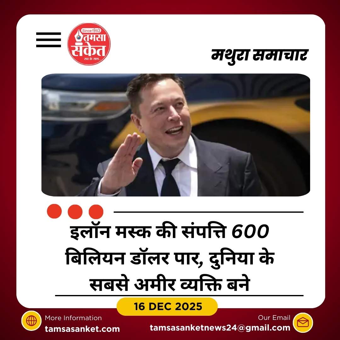 नई दिल्ली। दुनिया के सबसे अमीर शख्स इलॉन मस्क की संपत्ति अब 600 बिलियन डॉलर (₹54.60 लाख करोड़) के पार पहुंच गई है। यह उन्हें इस आंकड़े को छूने वाले दुनिया का पहला व्यक्ति बनाता है। इससे पहले 1 अक्टूबर को मस्क की संपत्ति 500 बिलियन डॉलर (₹45.50 लाख करोड़) थी।