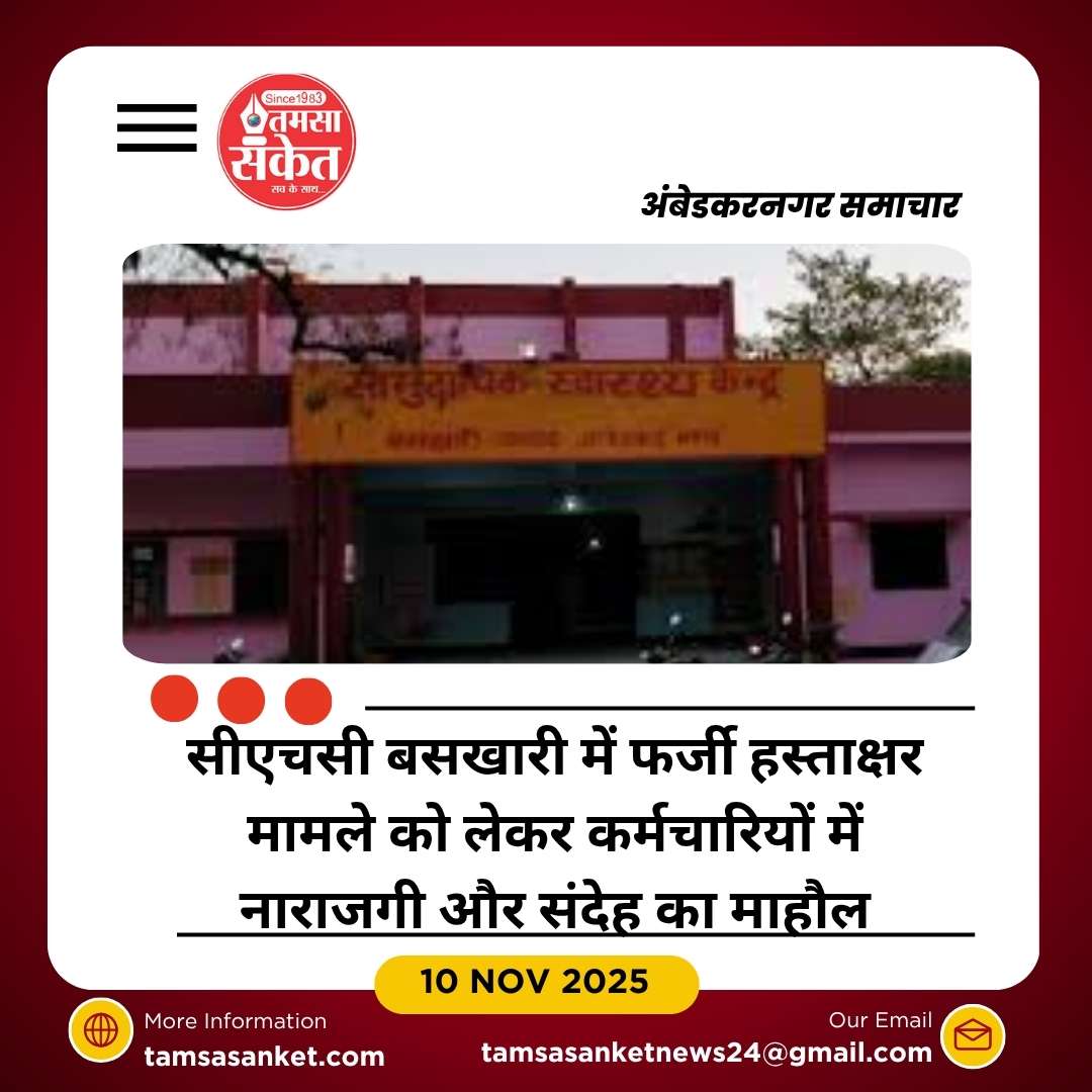 अंबेडकरनगर। सामुदायिक स्वास्थ्य केंद्र (सीएचसी) बसखारी में फर्जी हस्ताक्षर के गंभीर मामले पर तीन माह बीत जाने के बाद भी विभागीय कार्रवाई न होने से सवाल उठने लगे हैं। शिकायत के बावजूद स्वास्थ्य विभाग की चुप्पी और धीमी जांच की प्रक्रिया ने पूरे प्रकरण को संदेह के घेरे में ला दिया है। कर्मचारियों के बीच यह चर्चा का विषय बना हुआ है कि मामला जानबूझकर दबाया जा रहा है।