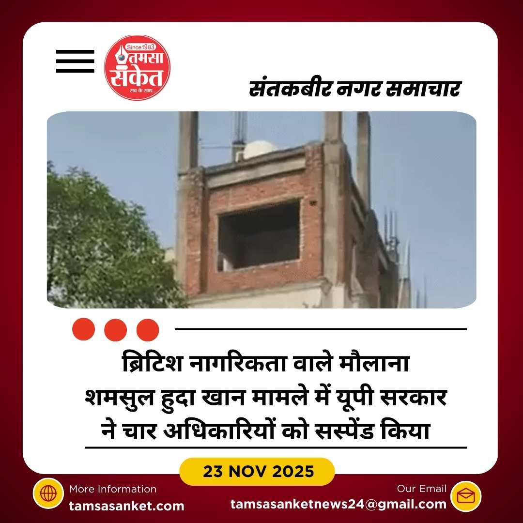 संतकबीर नगर। उत्तर प्रदेश सरकार ने ब्रिटिश नागरिकता वाले मौलाना शमसुल हुदा खान को वेतन और VRS का लाभ देने के आरोप में अल्पसंख्यक कल्याण विभाग के चार अधिकारियों को सस्पेंड कर दिया है। आरोप है कि अधिकारियों ने मौलाना को भारत में रहते हुए भी वेतन, अवकाश और पेंशन का लाभ दिलाया।