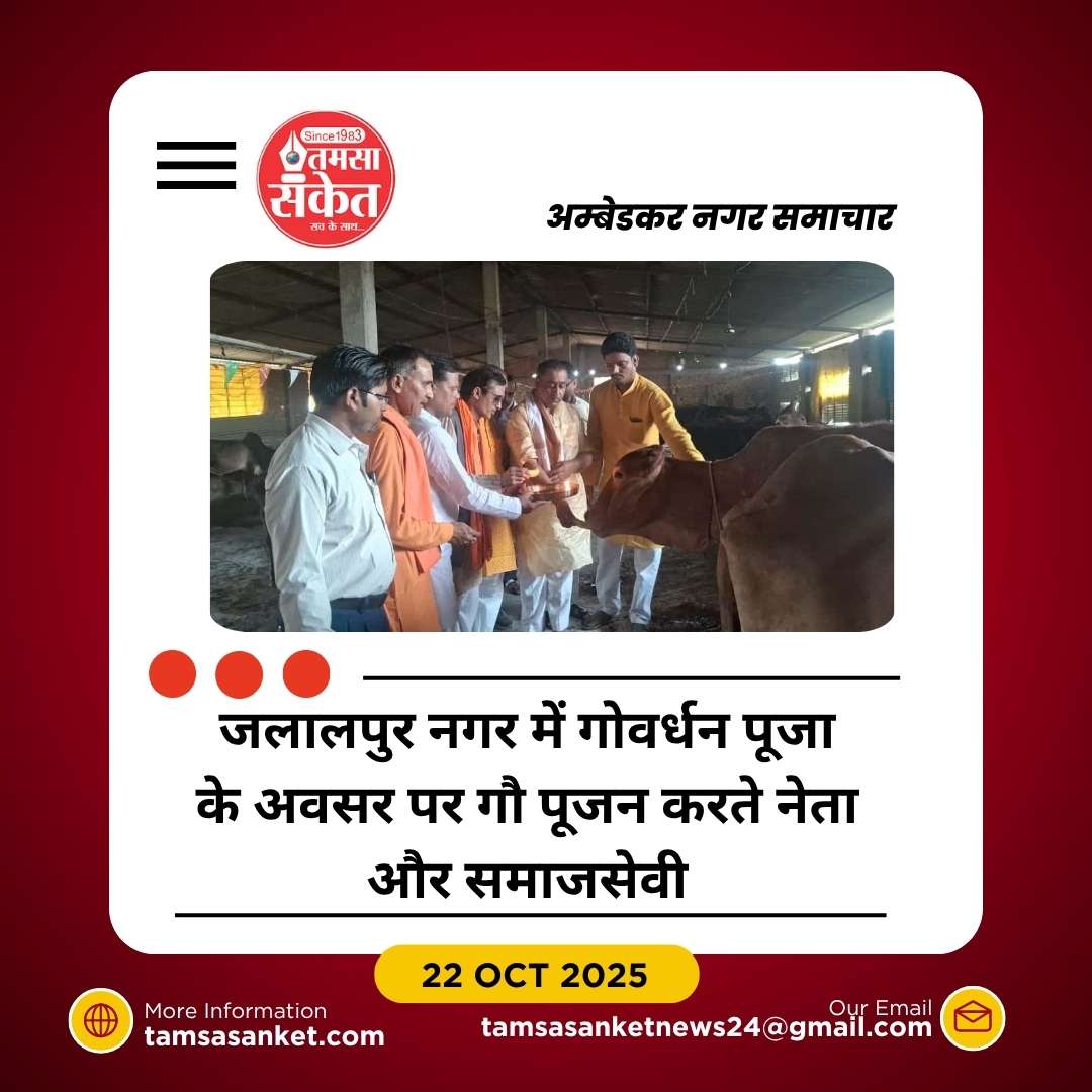 जलालपुर में गोवर्धन पूजा पर गौ पूजन का भव्य आयोजन, गौ संरक्षण का संदेश