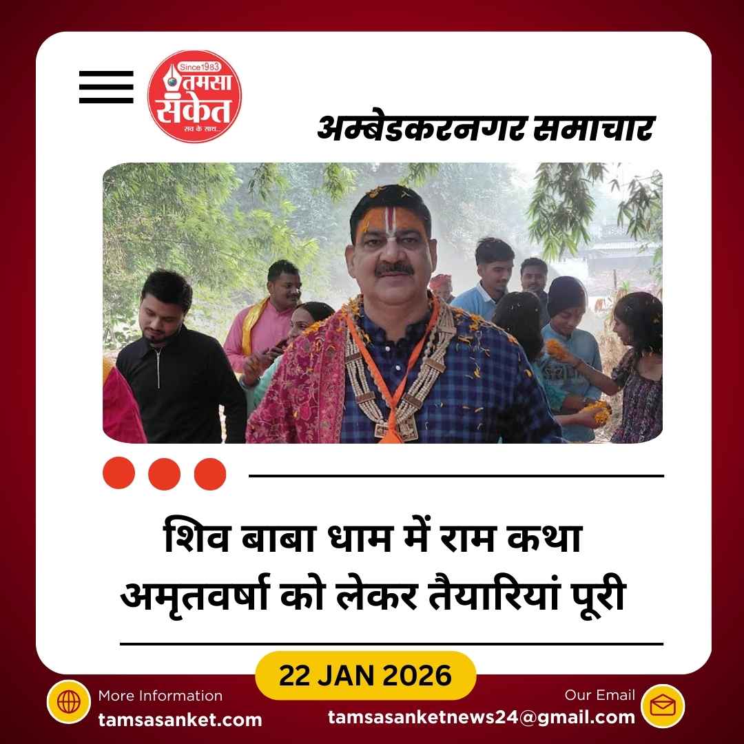 अम्बेडकरनगर। पावन तीर्थ शिव बाबा धाम एक बार फिर धार्मिक चेतना का केंद्र बनने जा रहा है। 23 जनवरी से 27 जनवरी तक यहां रामभक्ति, श्रद्धा और रामनाम की अविरल धारा प्रवाहित होगी। अवसर है “राम कथा अमृतवर्षा” के भव्य आयोजन का, जिसमें अयोध्या धाम से पधारे सुप्रसिद्ध कथावाचक राकेश महाराज प्रभु राम के जीवन, मर्यादा और आदर्शों का विस्तार से वर्णन करेंगे।