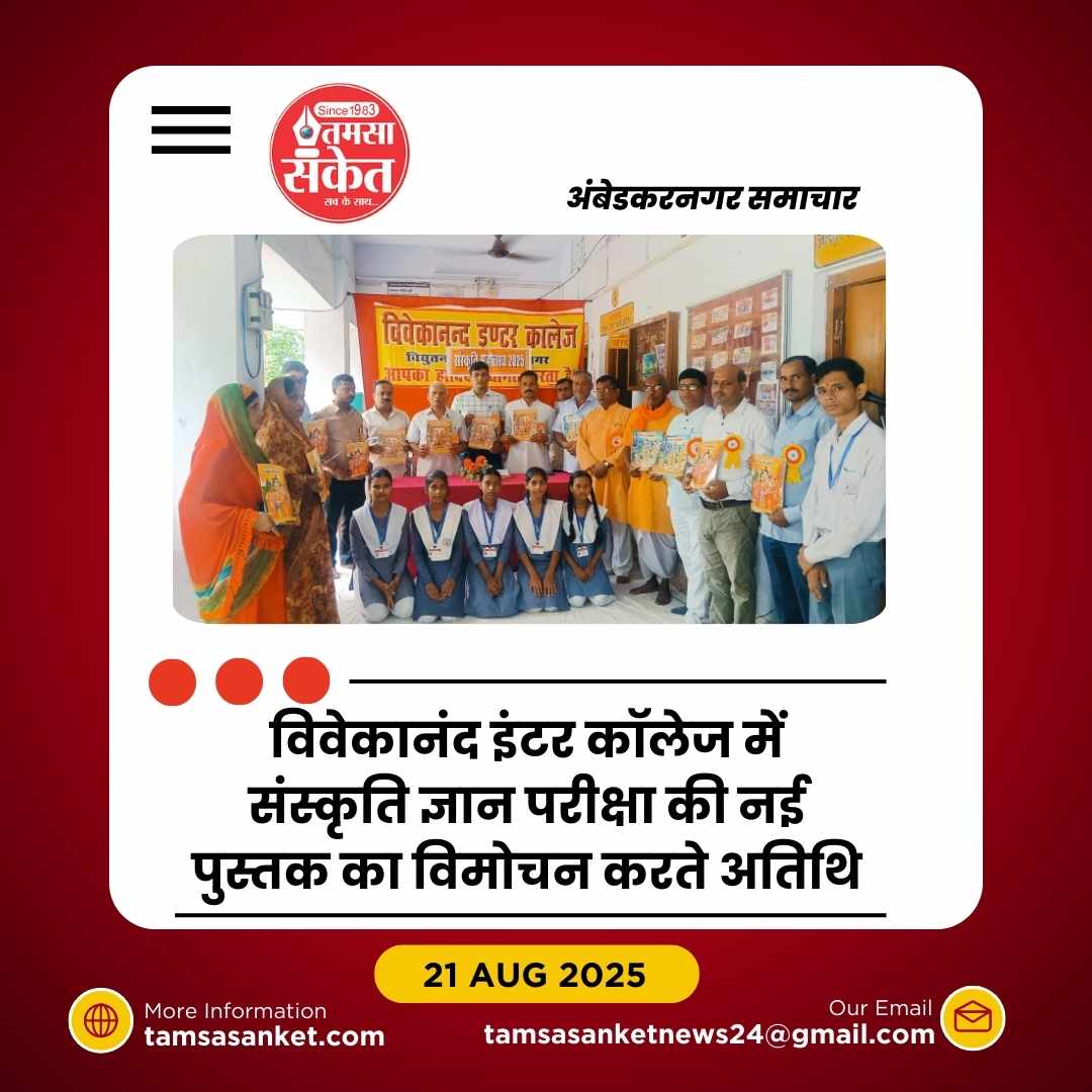 अंबेडकरनगर) विद्या भारती द्वारा संचालित विवेकानन्द इंटर कॉलेज विद्युतनगर में बुधवार को एक भव्य समारोह का आयोजन किया गया, जिसमें संस्कृति ज्ञान परीक्षा की नई पुस्तक का विमोचन किया गया। यह आयोजन विद्यालय के प्रधानाचार्य राम तीरथ यादव के मार्गदर्शन में संपन्न हुआ, जिसमें शिक्षा जगत के कई विशिष्ट अतिथि मौजूद रहे।