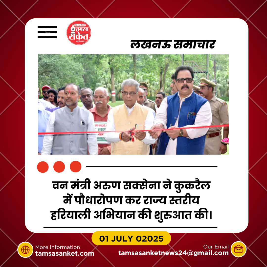 लखनऊ। उत्तर प्रदेश में हरियाली को बढ़ावा देने के लिए वन एवं पर्यावरण मंत्री अरुण कुमार सक्सेना ने मंगलवार को कुकरैल वन क्षेत्र में त्रिवेणी वन स्थापना दिवस पर पौधारोपण कर राज्य स्तरीय अभियान की शुरुआत की। इस अवसर पर उन्होंने बताया कि इस वर्ष 35 करोड़ पौधे लगाने का लक्ष्य तय किया गया है, जिसमें 27 विभागों की सहभागिता होगी।