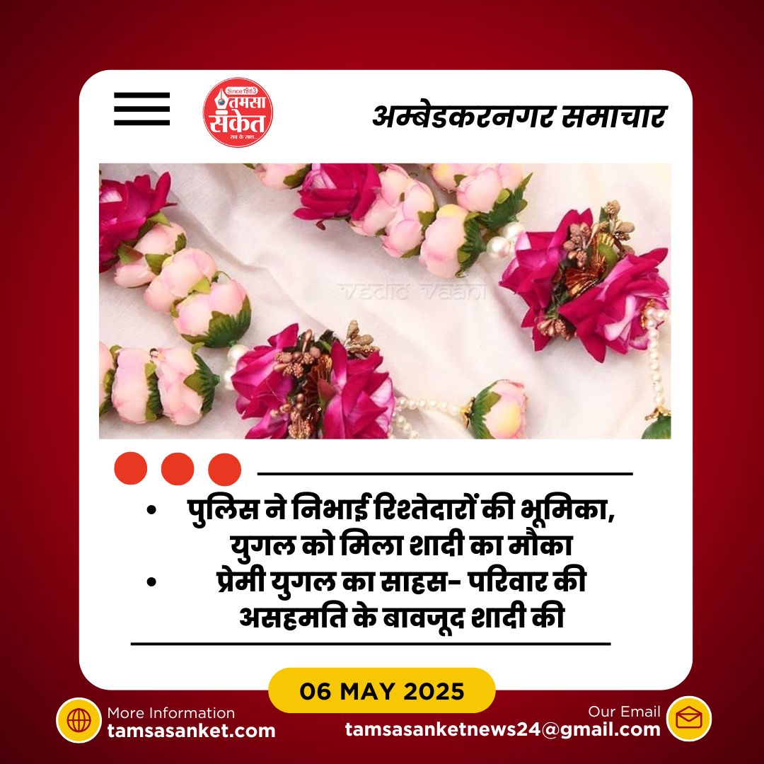 अम्बेडकरनगर। बसखारी थाना परिसर में स्थित शिव मंदिर में मंगलवार को एक प्रेमी युगल ने पुलिस की मौजूदगी में शादी की रस्म अदा की। युवक-युवती ने एक-दूसरे को वरमाला पहनाकर साथ जीवन बिताने की कसमें खाईं। हालांकि, इस मौके पर युवक के परिजन मौजूद नहीं रहे।