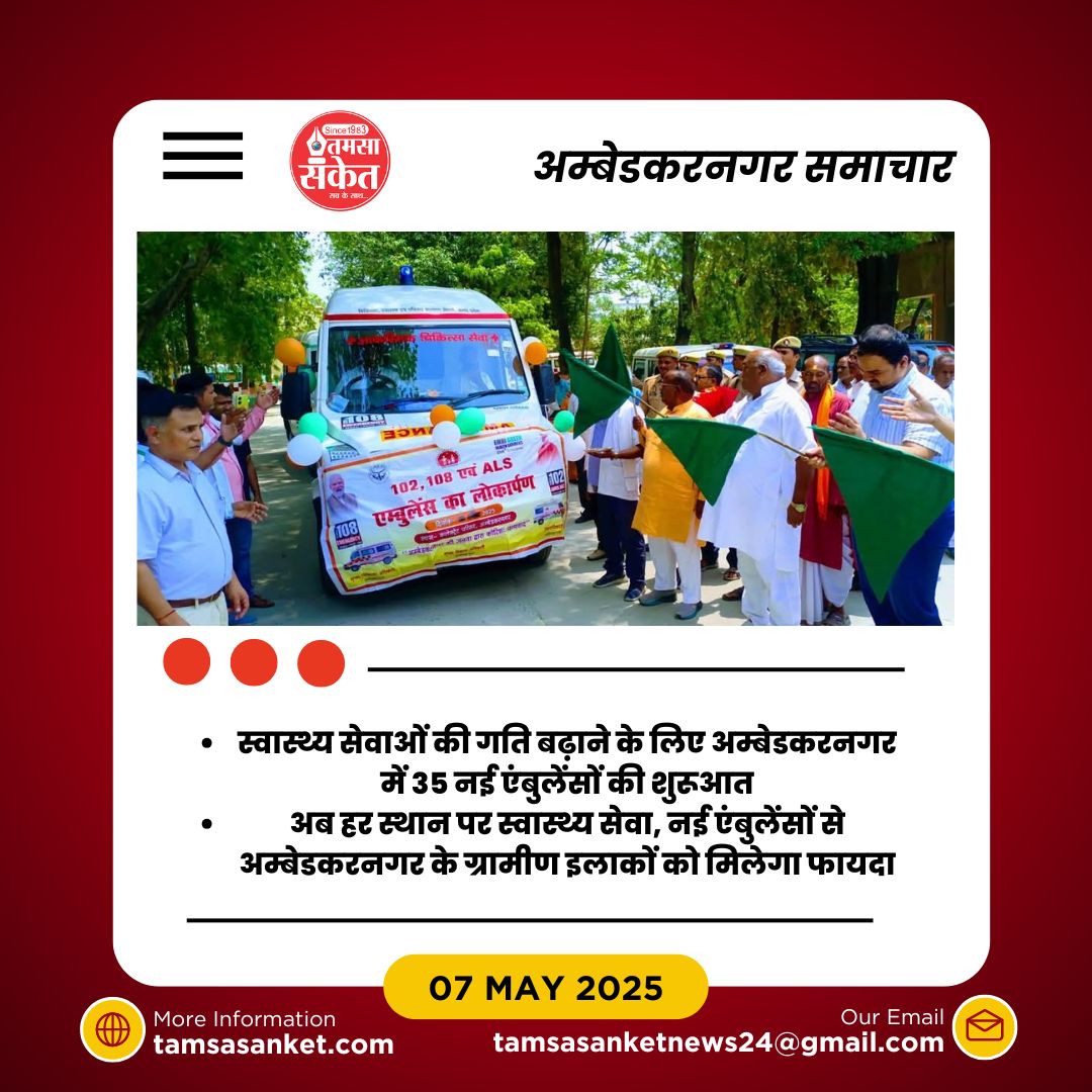 - अम्बेडकरनगर में 35 नई एंबुलेंसों का आगमन, स्वास्थ्य सेवाओं में मिलेगा त्वरित सुधार