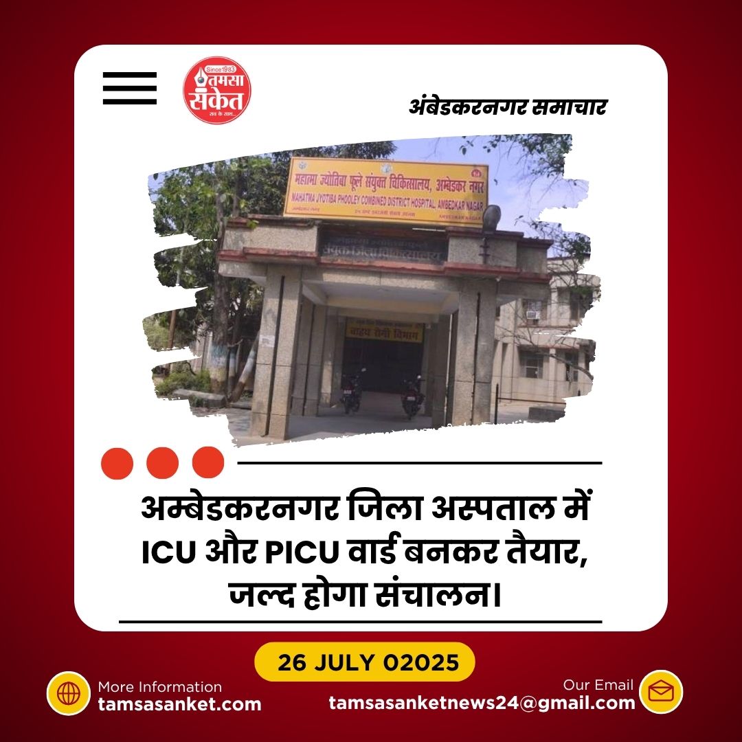 अम्बेडकरनगर। महात्मा ज्योतिबा फूले जिला चिकित्सालय में चिकित्सा सुविधाओं के विस्तार की दिशा में प्रगति हुई है। अस्पताल परिसर में आठ बेड की क्षमता वाला गहन चिकित्सा इकाई (आईसीयू) और दो बेड का बाल गहन चिकित्सा इकाई (पीआईसीयू) वार्ड बनकर पूरी तरह तैयार है। अब इन वार्डों के संचालन की प्रक्रिया अंतिम चरण में है।