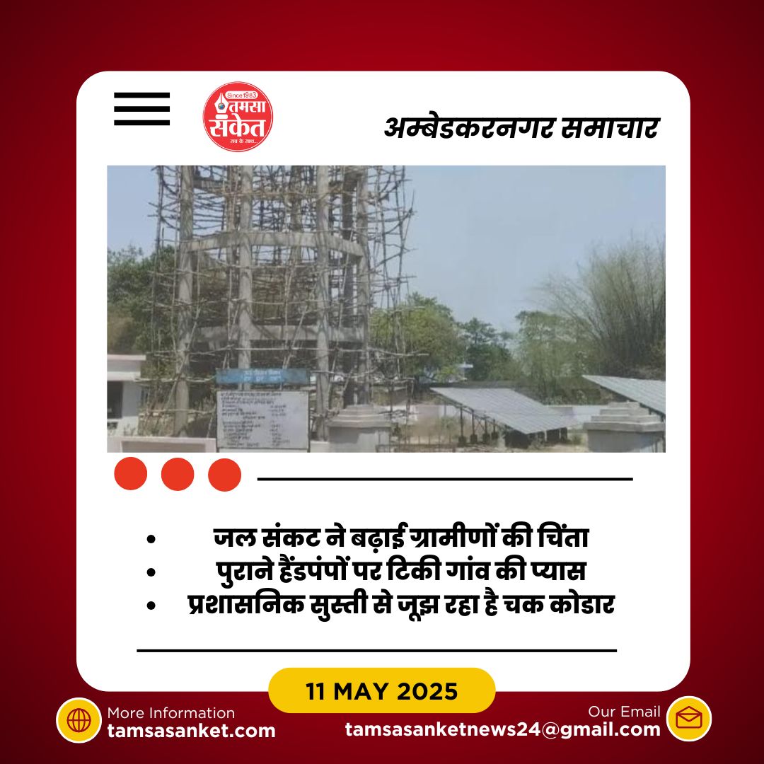 अम्बेडकरनगर। ग्राम पंचायत चक कोडार में जल जीवन मिशन के तहत स्वीकृत पेयजल योजना अधूरी पड़ी है, जिससे स्थानीय ग्रामीण भीषण गर्मी के मौसम में जल संकट से जूझ रहे हैं। निर्माणाधीन पानी की टंकी अब तक पूर्ण नहीं हो सकी है, वहीं पाइपलाइन बिछाए जाने के बावजूद कई स्थानों पर पाइप खुले हुए हैं, जिससे रोजाना पानी बहकर सड़कों पर फैल रहा है।