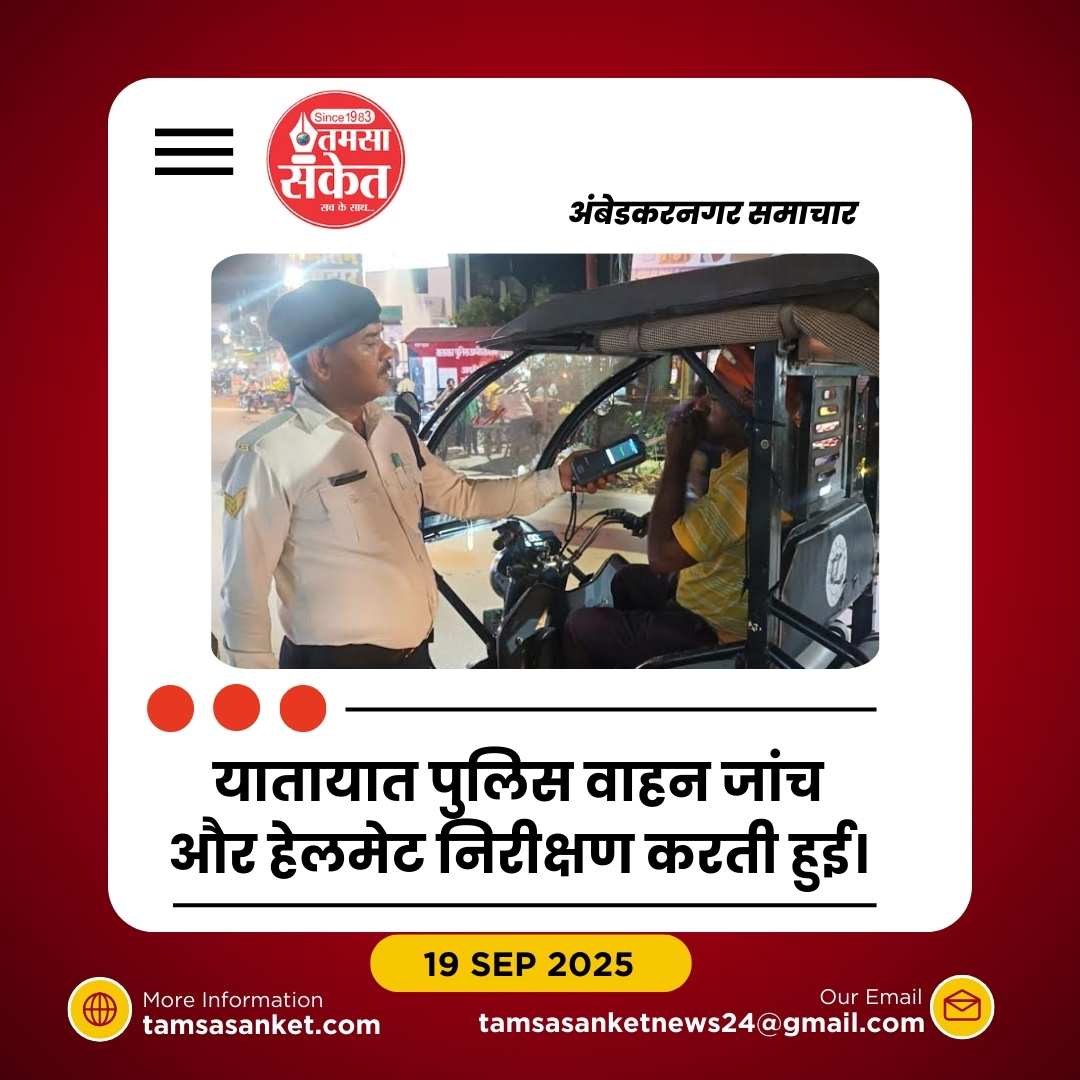 अंबेडकरनगर। यातायात नियमों के उल्लंघन को रोकने और दुर्घटनाओं पर लगाम लगाने के उद्देश्य से जनपद अंबेडकरनगर में पुलिस अधीक्षक के आदेशानुसार दिनांक 01 अप्रैल 2025 से सघन वाहन चेकिंग अभियान चलाया जा रहा है। इस अभियान को और अधिक प्रभावी बनाने के लिए 01 सितंबर 2025 से इसकी गति और सख्ती में इज़ाफा किया गया है।