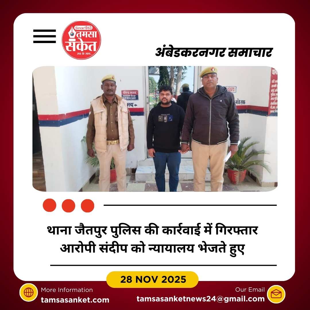 गिरफ्तार आरोपी संदीप पुत्र अच्छेलाल, निवासी ग्राम विहामदपुर, थाना जैतपुर, उम्र 24 वर्ष है। पुलिस टीम ने बताया कि आरोपी को 28 नवंबर 2025 की सुबह लगभग 8:20 बजे नियमानुसार घेराबंदी कर पकड़ा गया। गिरफ्तारी के बाद आवश्यक औपचारिकताएं पूरी करते हुए उसे न्यायालय अम्बेडकरनगर के लिए भेजा जा रहा है।