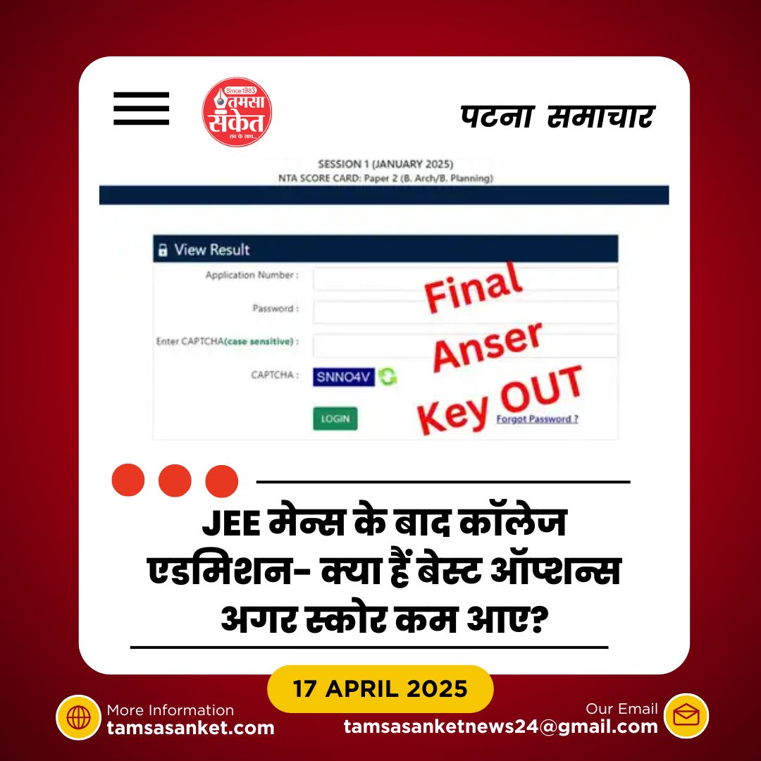 नई दिल्ली – नेशनल टेस्टिंग एजेंसी (NTA) ने आज JEE मेन्स 2025 सेशन 2 की फाइनल आंसर की आधिकारिक वेबसाइट jeemain.nta.nic.in पर जारी कर दी है। जो उम्मीदवार इस परीक्षा में शामिल हुए थे, वे अब जाकर अपने उत्तरों का मिलान कर सकते हैं। यह परीक्षा 2 अप्रैल से 9 अप्रैल के बीच आयोजित की गई थी।