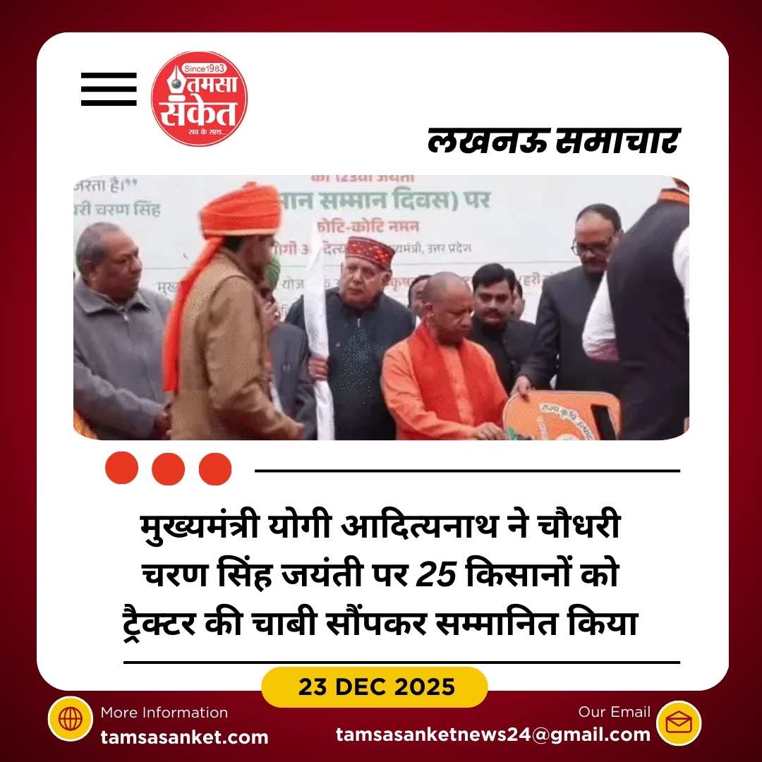 मुख्यमंत्री योगी आदित्यनाथ ने 25 किसानों को ट्रैक्टर की चाबी सौंपकर सम्मानित किया