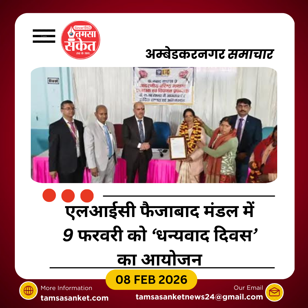 भारतीय जीवन बीमा निगम (एलआईसी) के फैजाबाद मंडल में 9 फरवरी 2026 को ‘धन्यवाद दिवस’ मनाया जाएगा। यह निर्णय केंद्रीय कार्यालय द्वारा मेनिका सिंह को मुख्य जीवन बीमा सलाहकार (सीएलआईए) नियुक्त किए जाने के बाद लिया गया है। मंडल स्तर पर इस नियुक्ति को एक महत्वपूर्ण उपलब्धि के रूप में देखा जा रहा है।