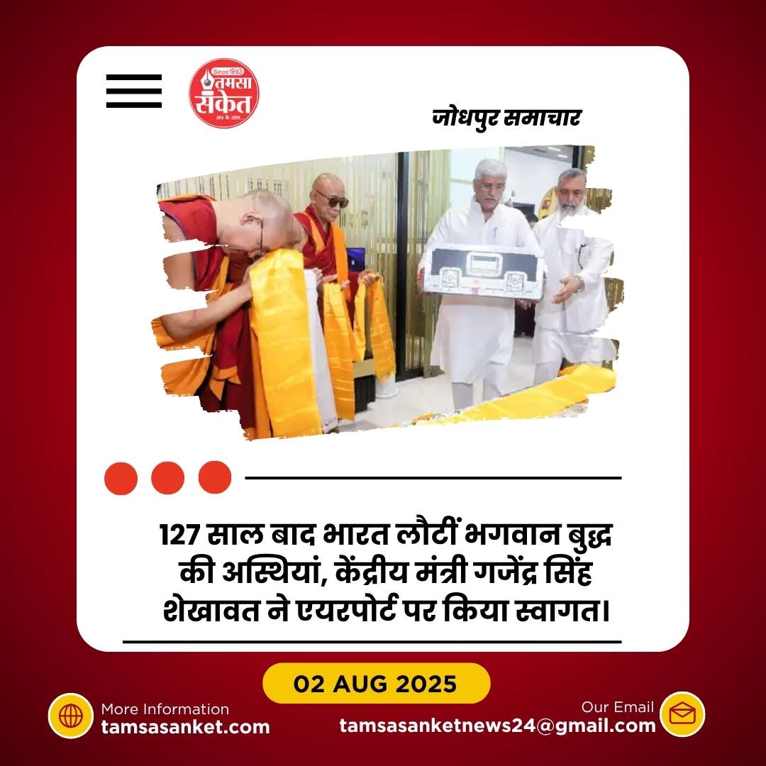 जोधपुर/दिल्ली। केंद्रीय संस्कृति एवं पर्यटन मंत्री गजेंद्र सिंह शेखावत ने शनिवार को बड़ा ऐलान करते हुए बताया कि भगवान बुद्ध की अस्थियां 127 साल बाद अपनी ‘वास्तविक भूमि’ भारत लौट आई हैं। शेखावत ने बताया कि ये अस्थियां 1898 में उत्तर प्रदेश के पिपरहवा (कपिलवस्तु) में खुदाई के दौरान मिली थीं, जिन्हें ब्रिटिश शासन के दौरान देश से बाहर भेज दिया गया था।
