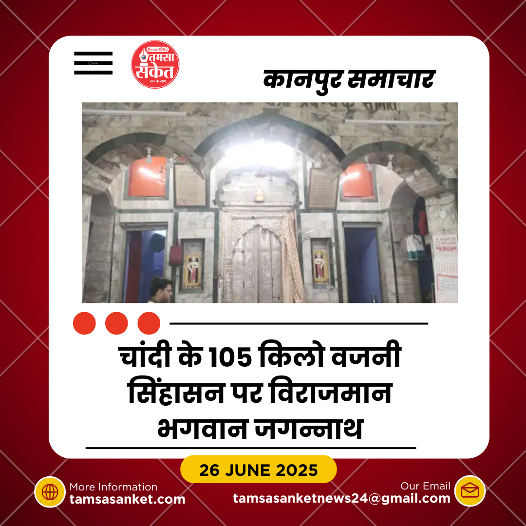 कानपुर। 27 जून को कानपुर की सड़कों पर एक बार फिर भक्ति, परंपरा और आस्था का अद्भुत संगम देखने को मिलेगा। जनरलगंज स्थित बाई जी मंदिर से भगवान जगन्नाथ, बहन सुभद्रा और भाई बलभद्र नगर भ्रमण पर निकलेंगे। खास बात यह है कि भगवान जगन्नाथ 105 किलो चांदी के सिंहासन पर विराजमान होकर चांदी से सजे ऐतिहासिक रथ पर सवार होंगे।