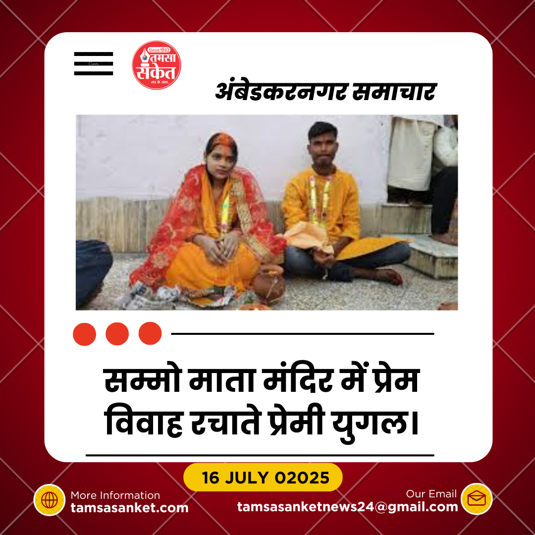अम्बेडकरनगर।आलापुर तहसील क्षेत्र के बहरामपुर स्थित प्रसिद्ध सम्मो माता मंदिर मंगलवार को उस समय चर्चाओं का केंद्र बन गया जब एक प्रेमी युगल सामाजिक परंपराओं की दीवार लांघकर विवाह रचाने पहुंचा। स्थानीय लोगों के बीच यह विवाह कौतूहल और बातचीत का विषय बना रहा।