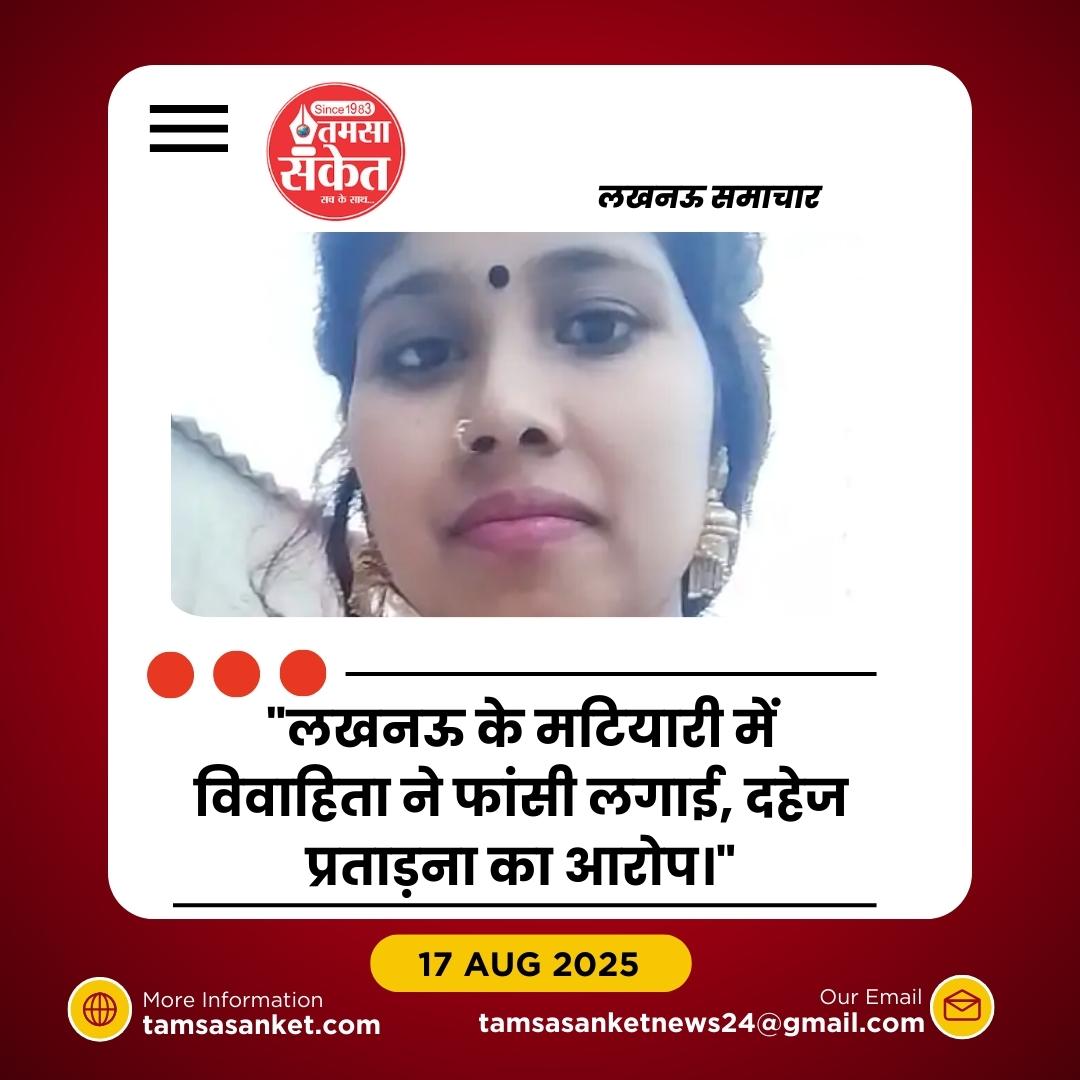 - लखनऊ के मटियारी में विवाहिता ने फांसी लगाकर दी जान