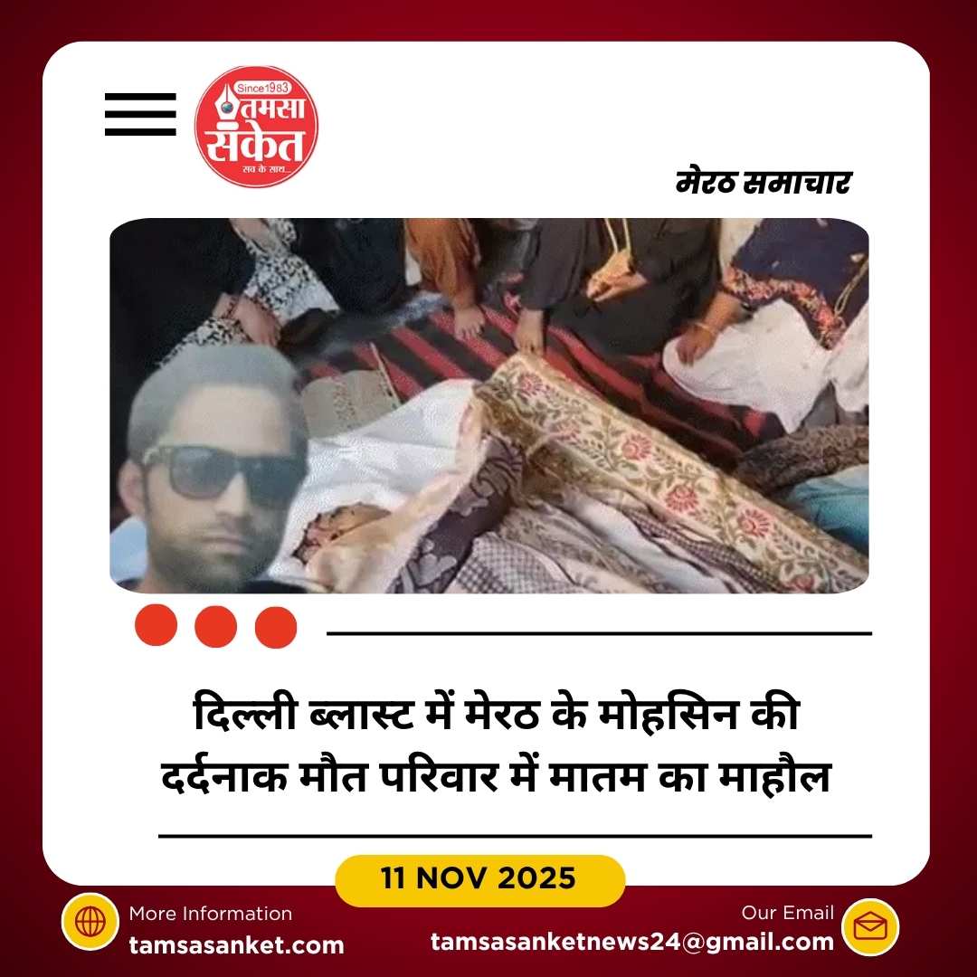 - दिल्ली लाल किला मेट्रो स्टेशन पर हुए ब्लास्ट में मेरठ के मोहसिन (32) की मौत।