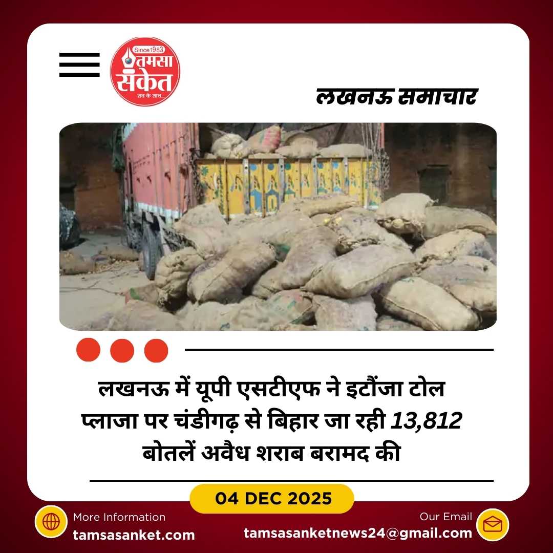 लखनऊ। इटौंजा इलाके में यूपी एसटीएफ ने बुधवार रात बड़ी कार्रवाई करते हुए चंडीगढ़ से बिहार भेजी जा रही भारी मात्रा में अवैध शराब पकड़ी। इस दौरान टोल प्लाजा सीतापुर रोड, थाना इटौंजा पर घेराबंदी कर आरोपी को गिरफ्तार किया गया और ट्रक से 13,812 बोतलें बरामद की गईं।