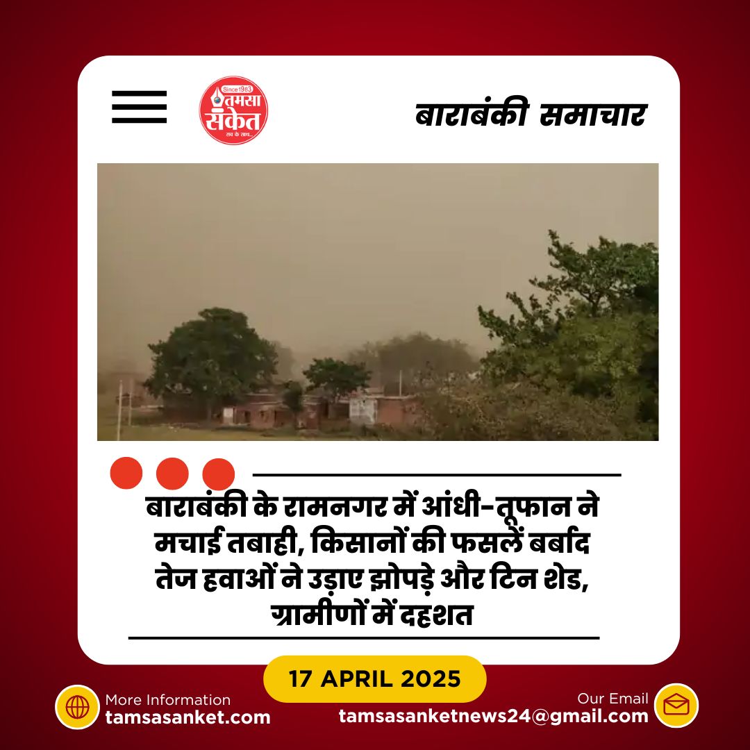 रामनगर (बाराबंकी), 17 अप्रैल — गुरुवार शाम बाराबंकी के रामनगर क्षेत्र में अचानक आए तेज आंधी-तूफान और बारिश ने भारी तबाही मचाई। करीब शाम 4 बजे शुरू हुई तेज़ हवाओं के साथ आई धूलभरी आंधी ने कई गांवों को अपनी चपेट में ले लिया। झोपड़ियों और टिन शेडों के उड़ने से कई ग्रामीणों के आशियाने प्रभावित हुए।