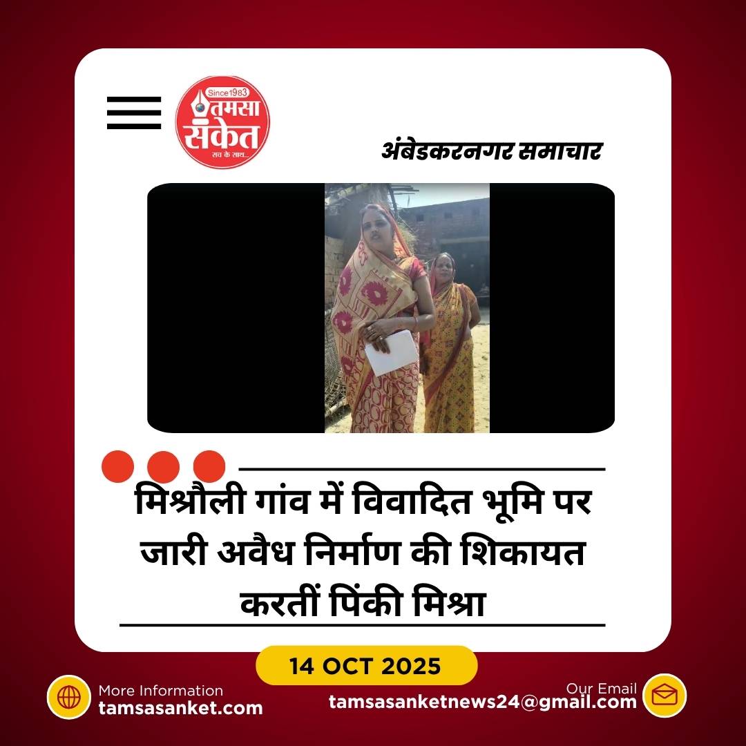 अंबेडकर नगर | संवाददाता।जिले के भीटी तहसील अंतर्गत मिश्रौली गांव में एक गरीब परिवार अपनी ही पैतृक आबादी भूमि पर हो रहे अवैध कब्जे से त्रस्त है। पिंकी मिश्रा नाम की महिला अपने सास-ससुर और बच्चों के साथ न्याय के लिए महीनों से प्रशासनिक चौखटों पर चक्कर काट रही है, लेकिन अब तक राहत नहीं मिल सकी है। दबंगों के खुलेआम कब्जे और प्रशासन की चुप्पी ने पूरे गांव को बेचैन कर दिया है।