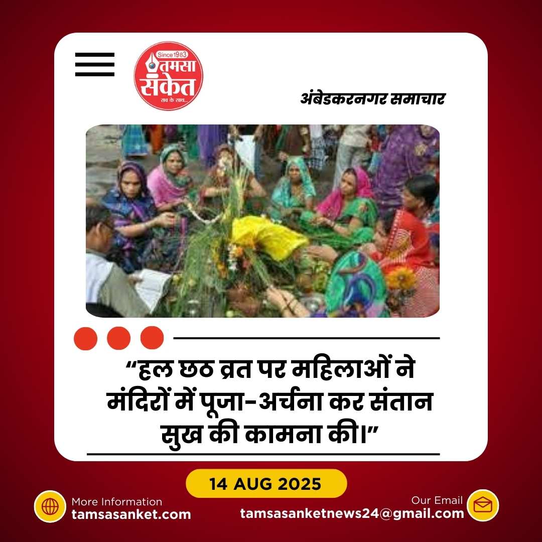 अंबेडकर नगर। भादो माह की षष्ठी तिथि पर गुरुवार को जिलेभर में पारंपरिक आस्था का पर्व हल छठ पूरे श्रद्धा-उत्साह के साथ मनाया गया। ग्रामीण अंचलों से लेकर नगर क्षेत्र तक महिलाओं ने व्रत रखकर संतान की लंबी उम्र और सुख-समृद्धि की कामना की। इस अवसर पर मंदिरों में विशेष पूजा-अर्चना और धार्मिक आयोजन हुए।