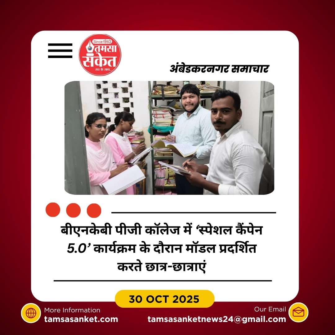 अंबेडकरनगर)। बी.एन.के.बी. पी.जी. कॉलेज, अकबरपुर के बी.एड. विभाग में गुरुवार को एनसीटीई द्वारा संचालित Special Campaign 5.0 – 2025 के अंतर्गत एक विशेष कार्यक्रम आयोजित किया गया। कार्यक्रम का मुख्य उद्देश्य रिकॉर्ड मैनेजमेंट सिस्टम की समीक्षा, कार्यस्थल पर उत्पादक स्थान उपयोग और वेस्ट मटेरियल के रचनात्मक दोहन के माध्यम से कार्यस्थल अनुभव को बेहतर बनाना रहा।