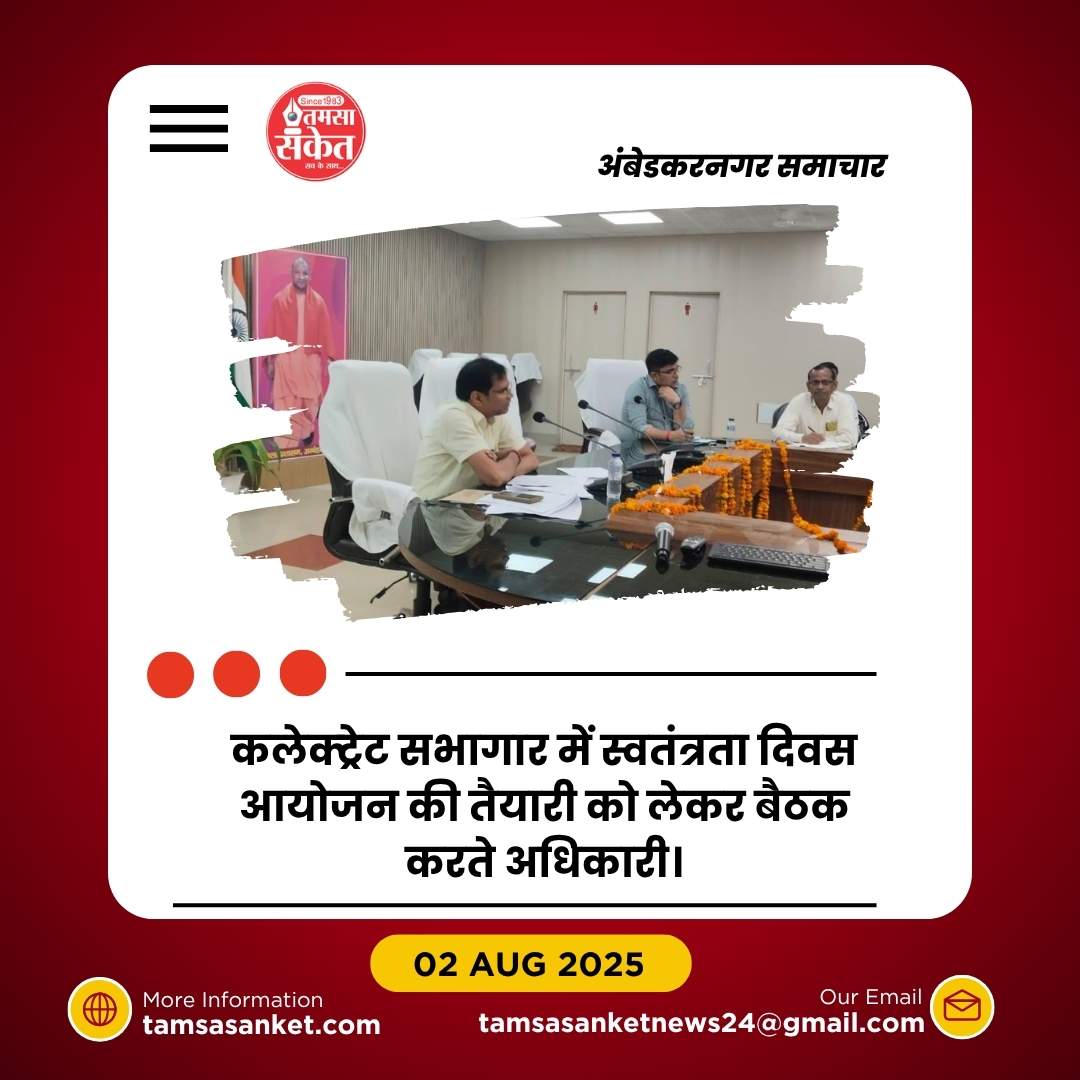 अंबेडकरनगर। जिलाधिकारी अनुपम शुक्ला के निर्देश पर आगामी 15 अगस्त 2025 को स्वतंत्रता दिवस समारोह को सफलतापूर्वक संपन्न कराने हेतु अपर जिलाधिकारी (वित्त एवं राजस्व) डॉ. सदानंद गुप्ता की अध्यक्षता में कलेक्ट्रेट सभागार में तैयारियों को लेकर महत्वपूर्ण बैठक आयोजित की गई।